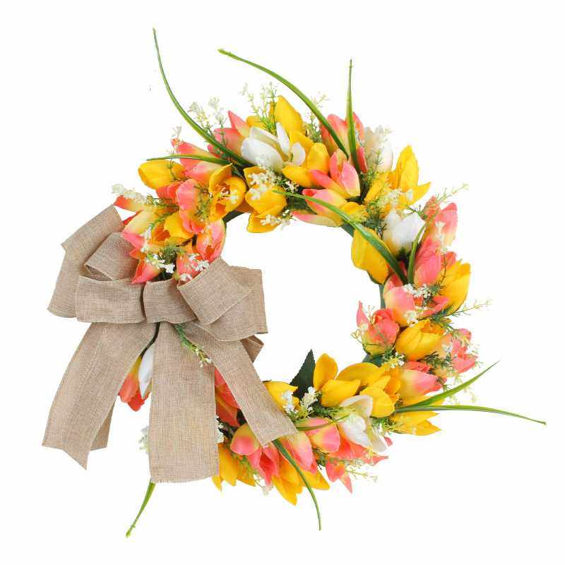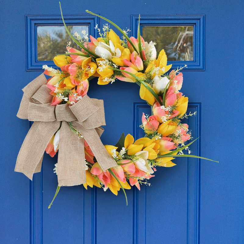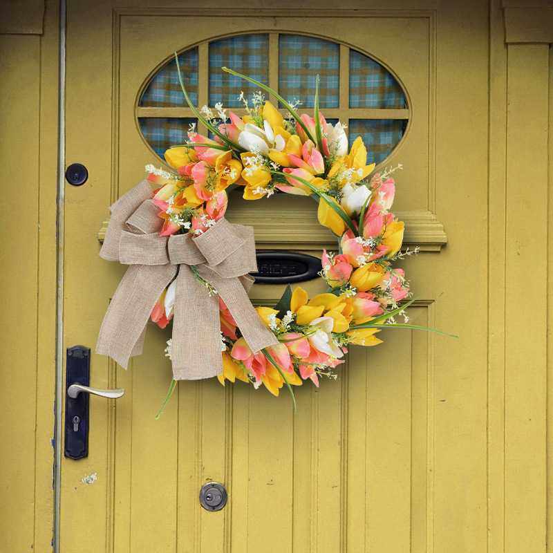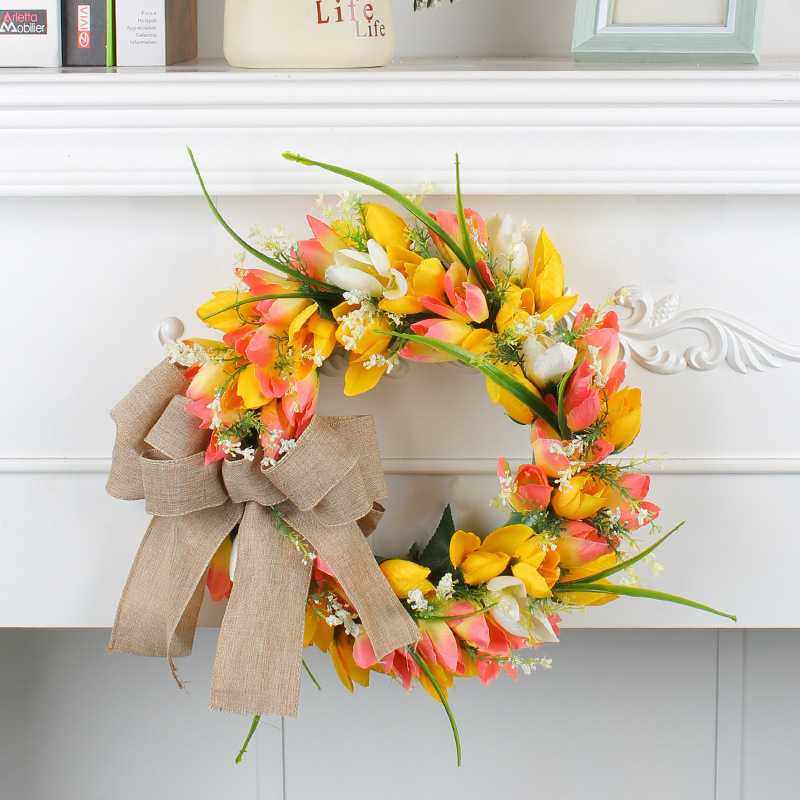 饰品门墙挂件 节日蝴蝶结花圈装 亚马逊新款 郁金香花环门挂2025春季