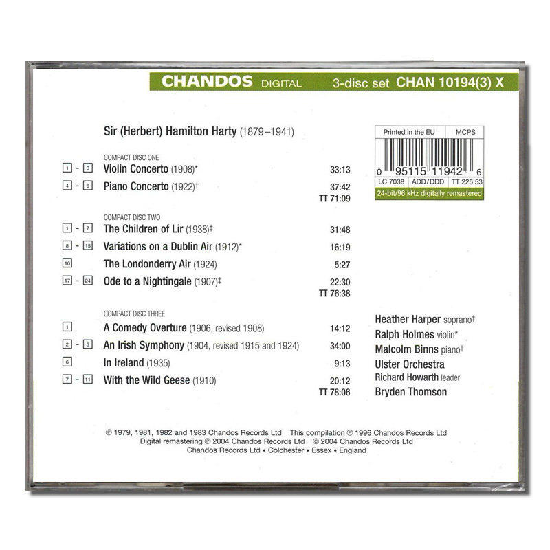 管弦乐作品集 哈蒂 HARTY 3CD光盘 原装 IRELAND 进口