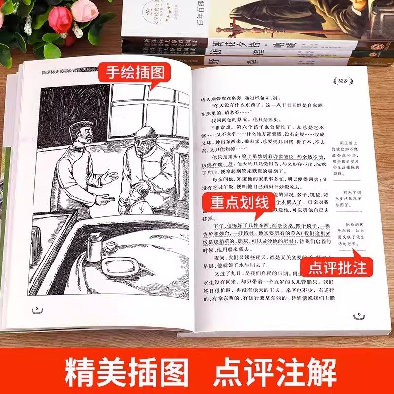 散文作品集经典 书6年级课外阅读书籍老师推荐 全集读本漂流鲁滨逊 野草全套4册六年级必读课外书 配套考点故乡原著正版