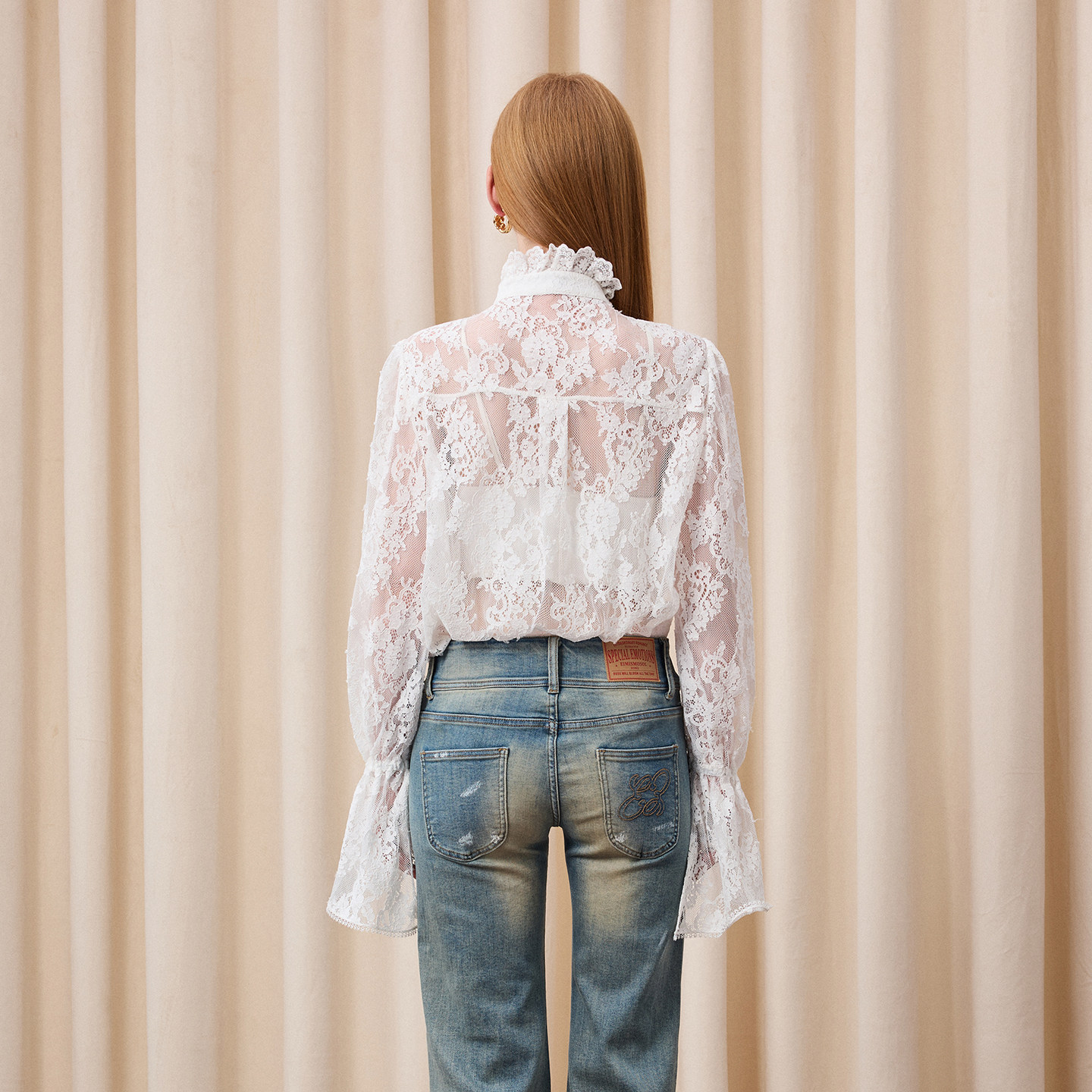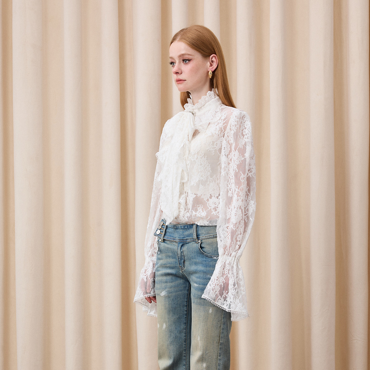 女雪纺衫 中长荷叶边蝴蝶结蕾丝衬衫 上衣 法式 Eimismosol2026新款