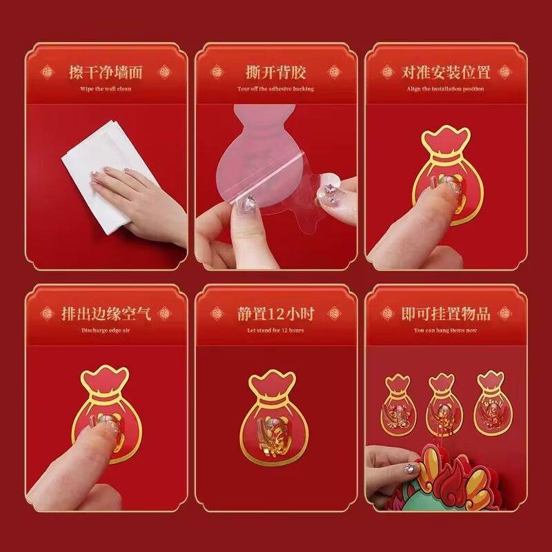 挂钩新年福字红色喜庆小挂钩强力粘胶免打孔挂中国结灯笼承重粘钩
