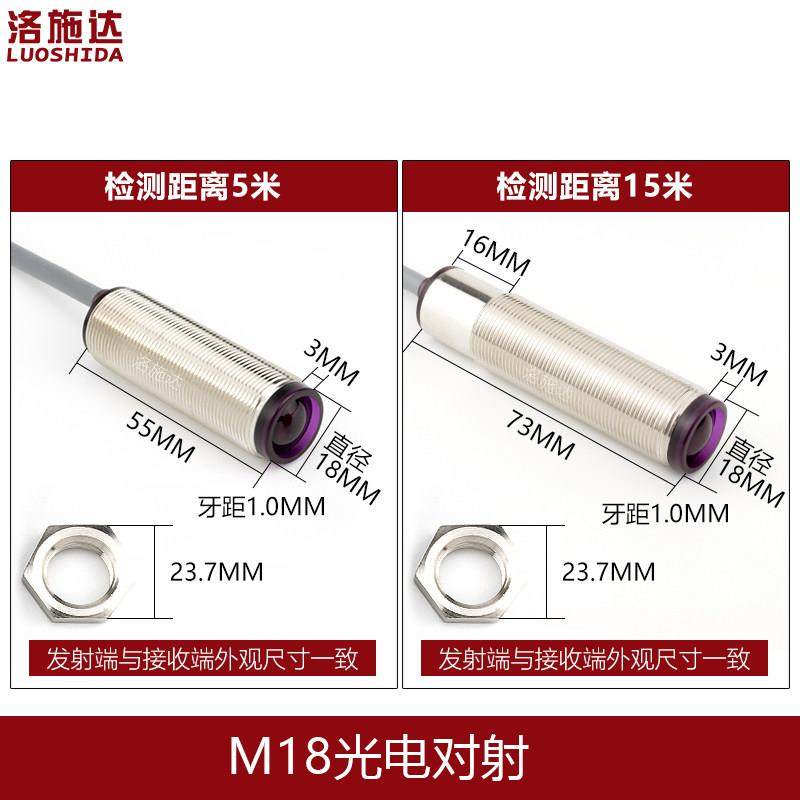 M18光电开关感测器对射FTT 18NO不可见红外对射光电感应开关DC24v