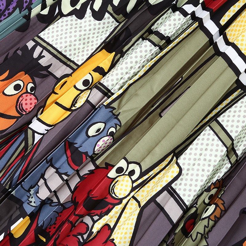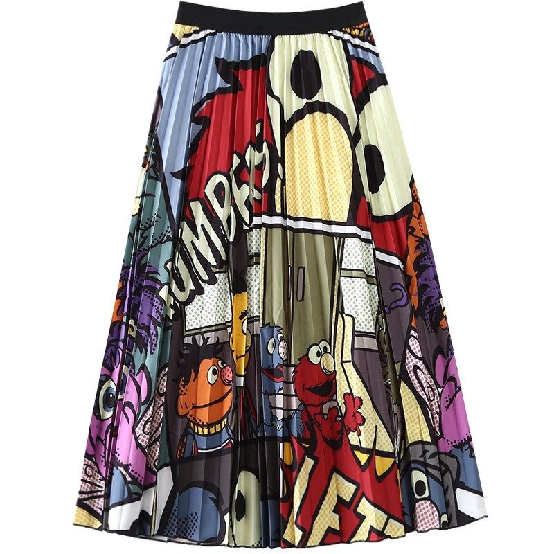 半身裙春秋女士中长款 大摆裙百搭松紧腰显瘦百搭风琴褶印花百褶裙