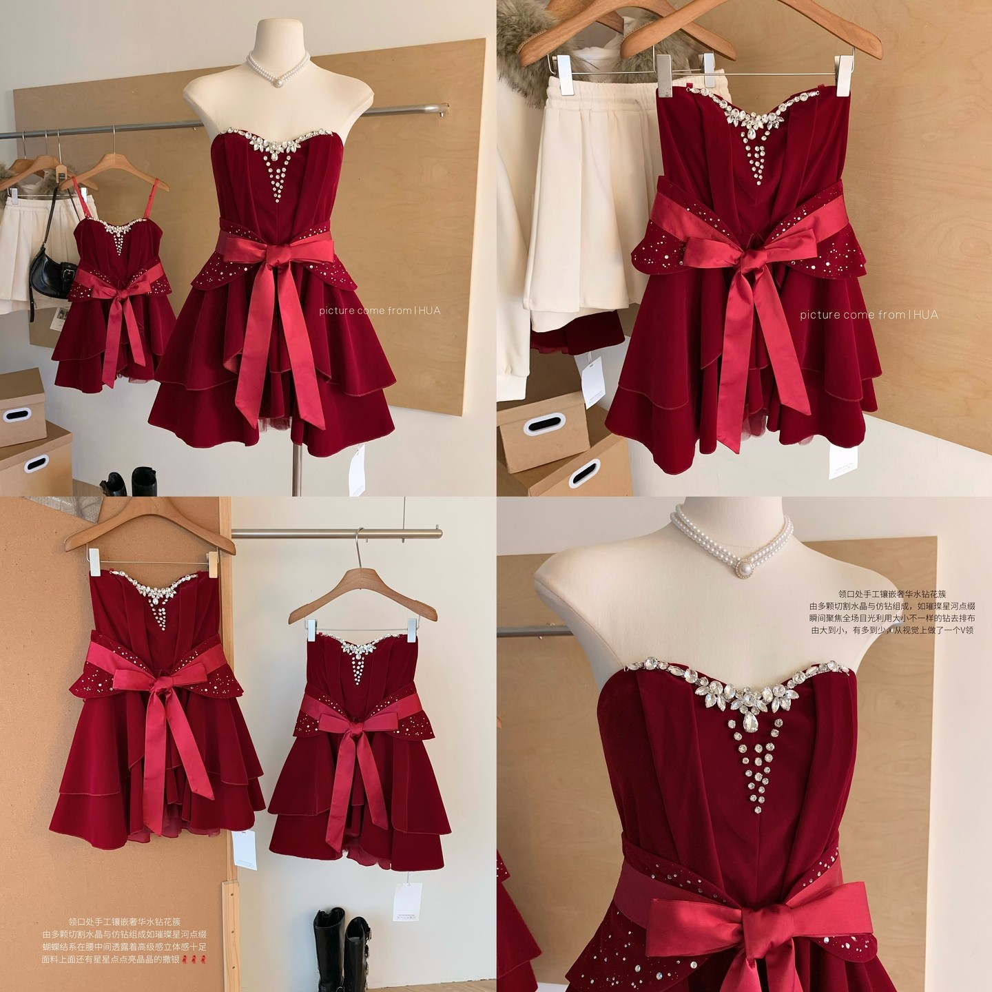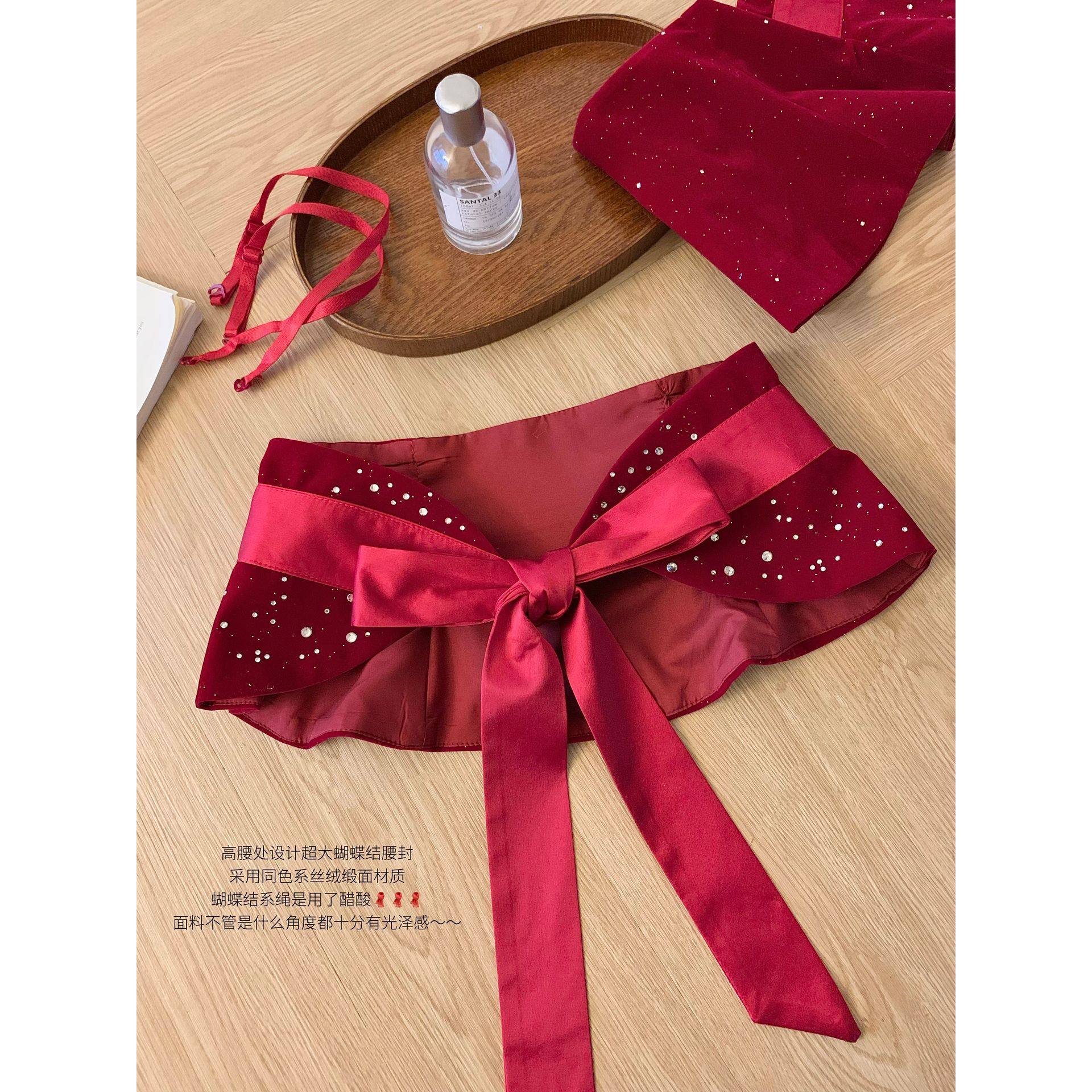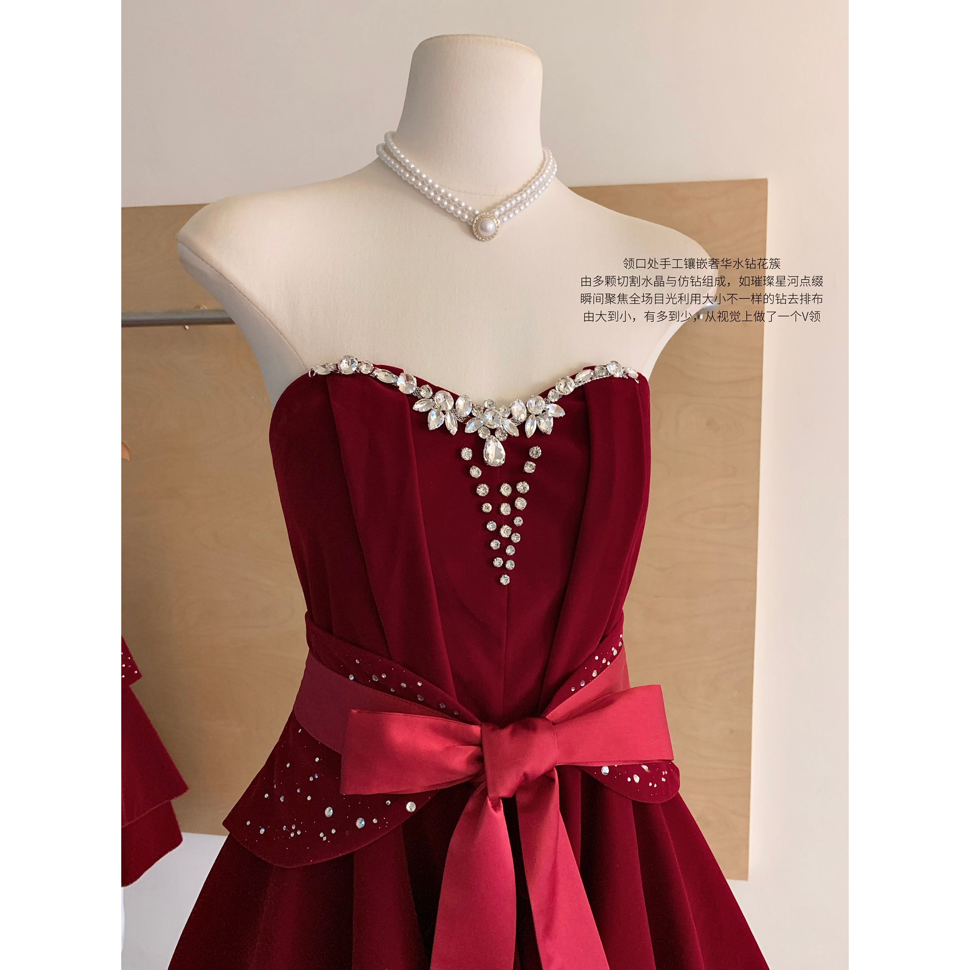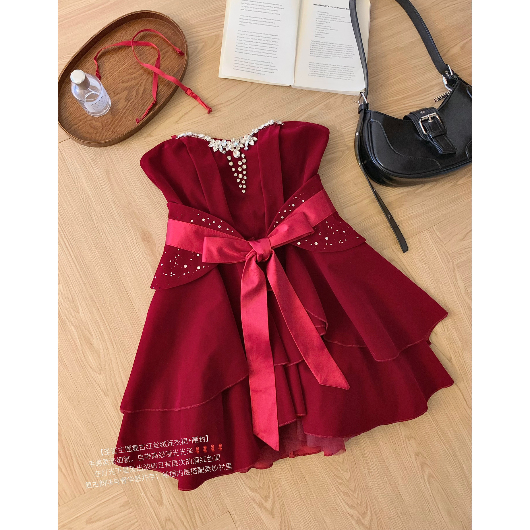 复古红丝绒连衣裙 圣诞主题小礼裙 腰封 罗曼蒂克 Catyears猫年
