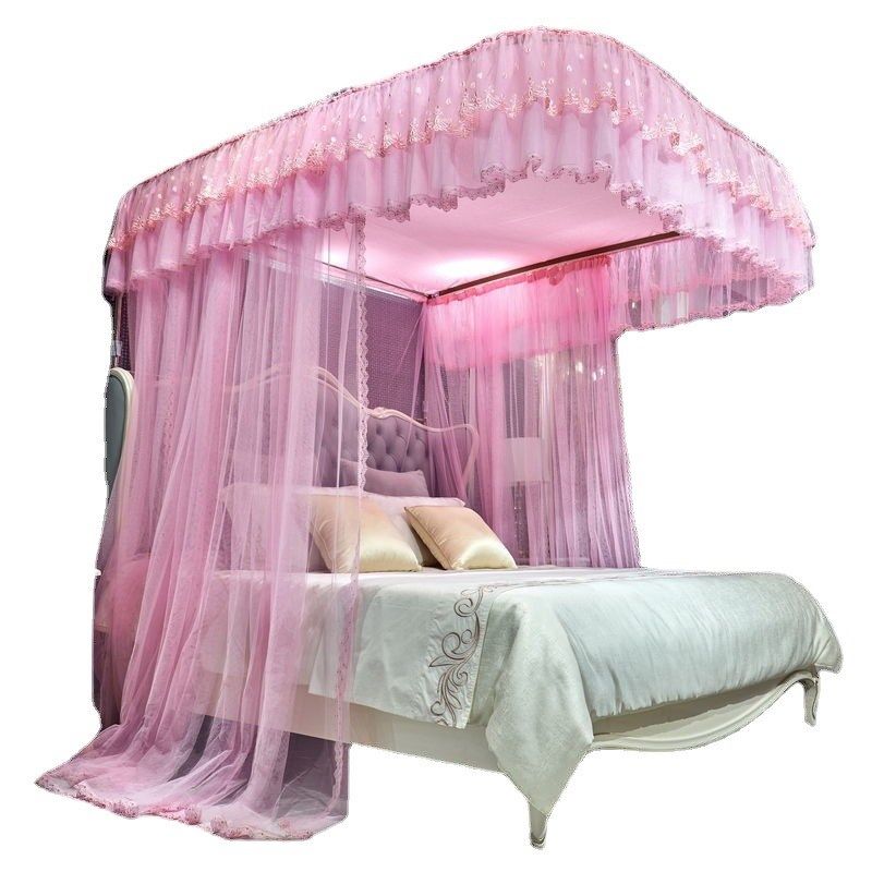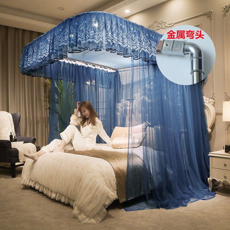 蚊帐 公主高档导轨u型轨道三开门公主风纹用1.2米1.5m1.8米双人床