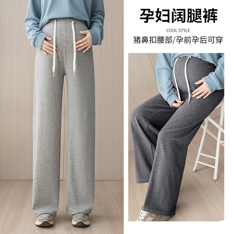 抽绳拖地裤 大码 垂感百搭直筒长裤 子春秋慵懒阔腿裤 200斤孕妇裤
