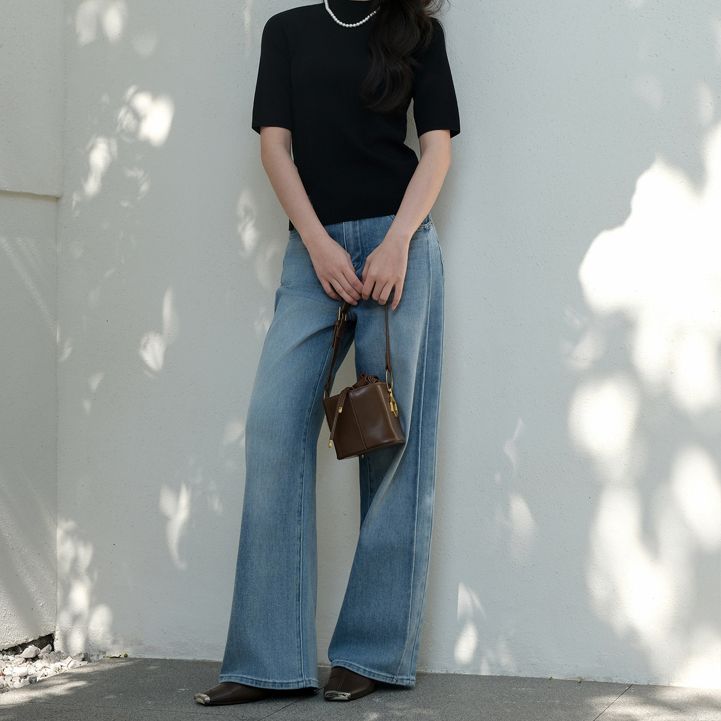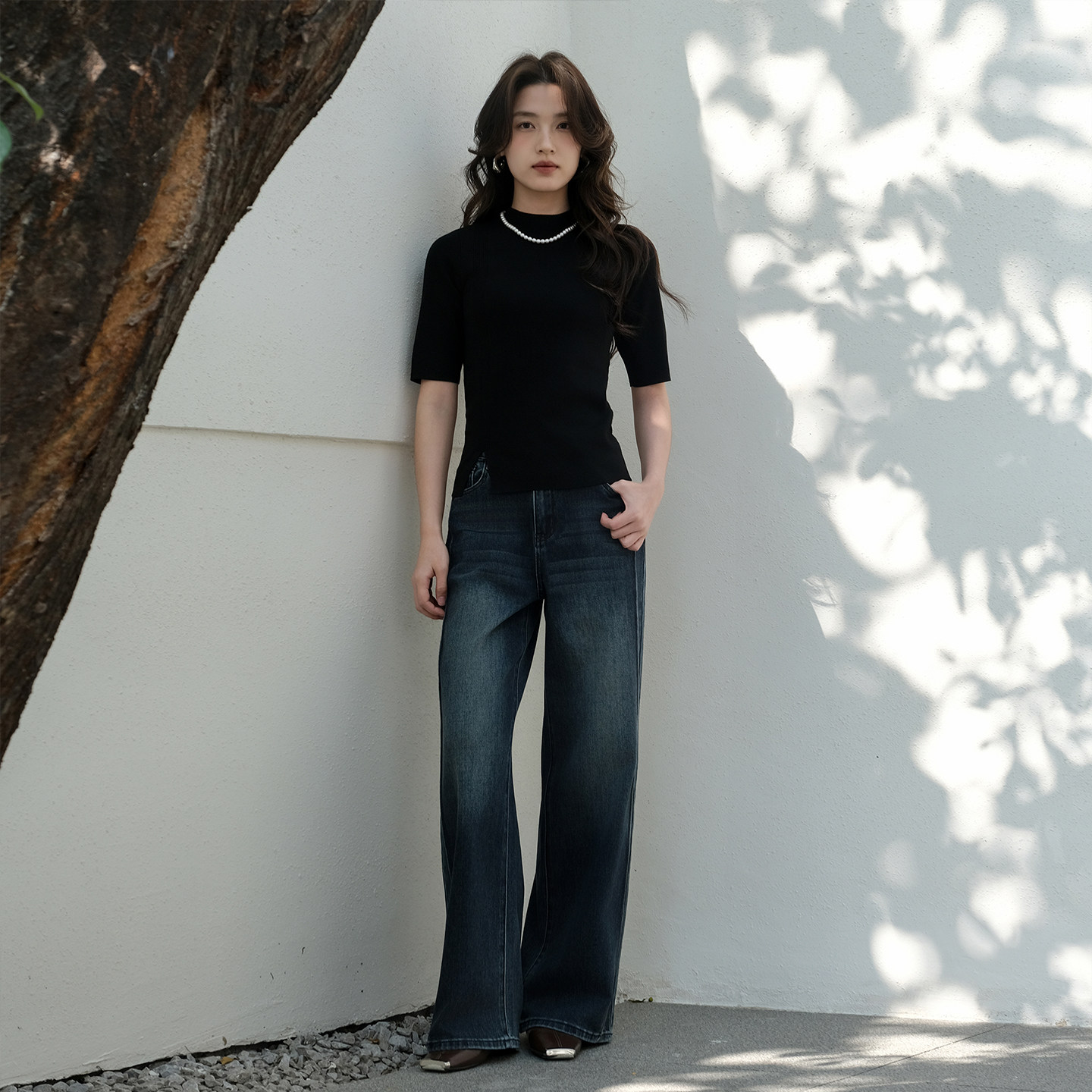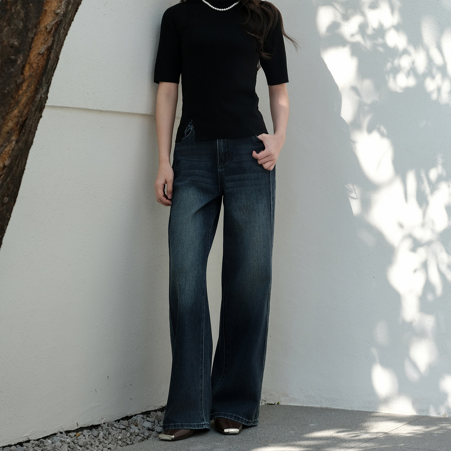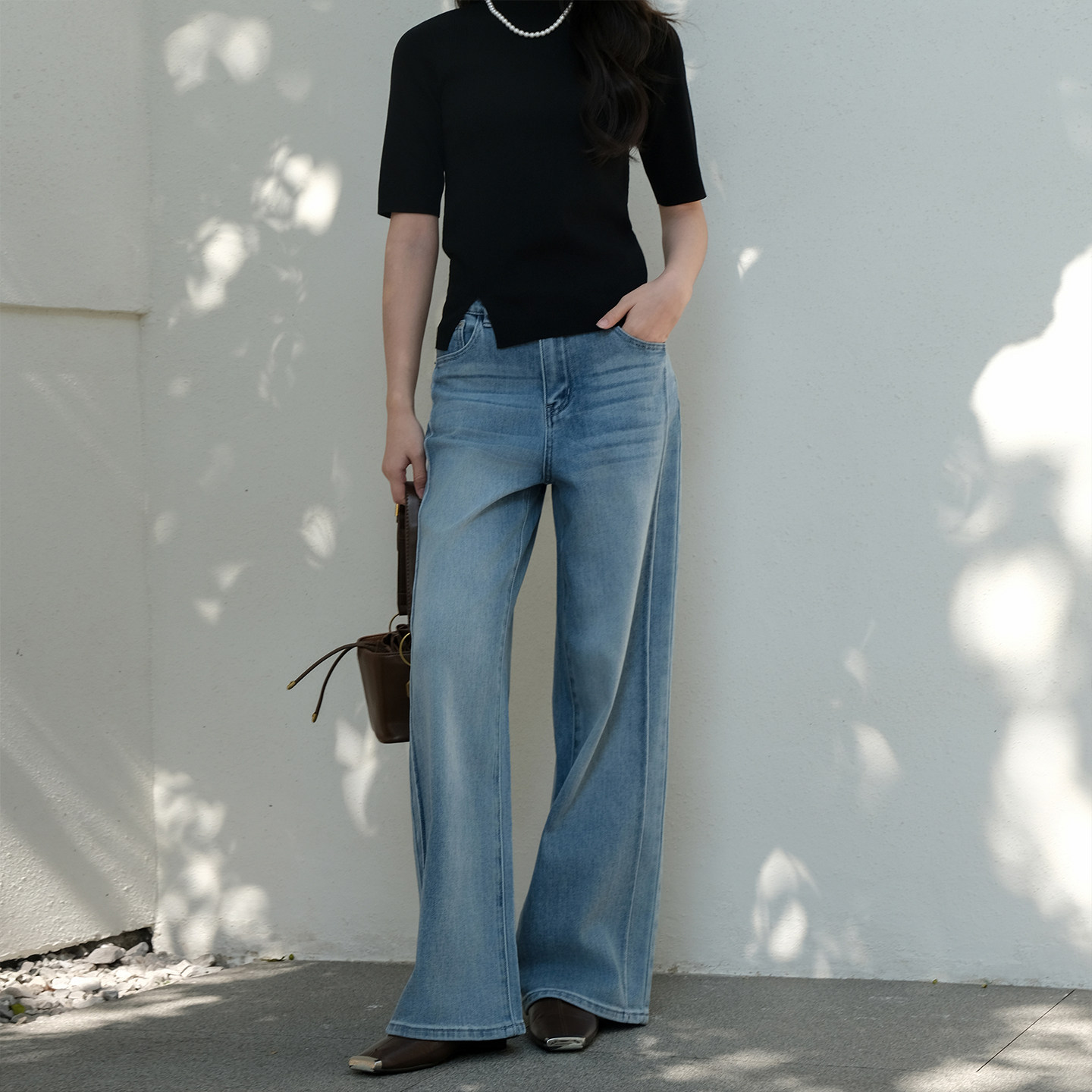 商场同款 洋气百搭裤 阿依莲复古宽松阔腿牛仔裤 新款 子 女26春季