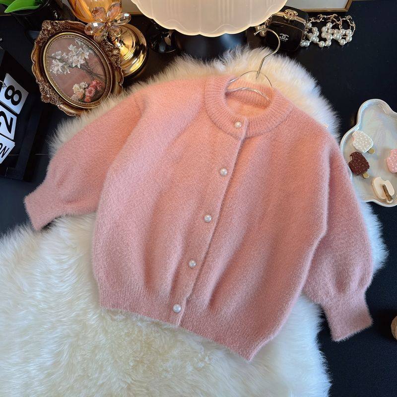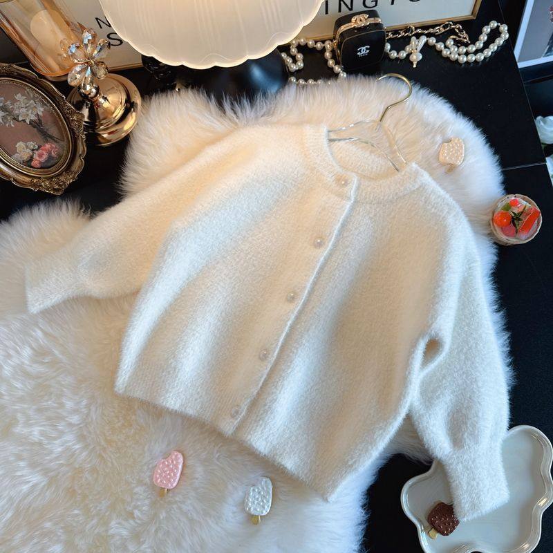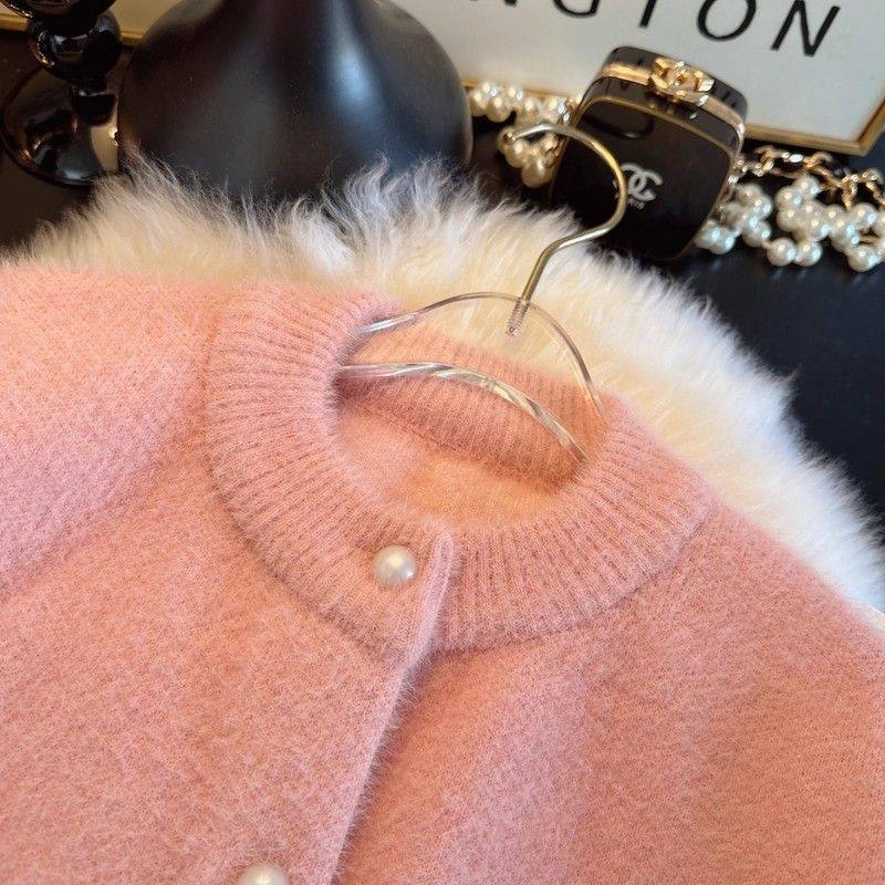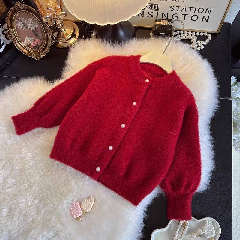 女童水貂绒开衫 女宝宝针织外套拜年服红色 毛衣亲子毛绒上衣新年装