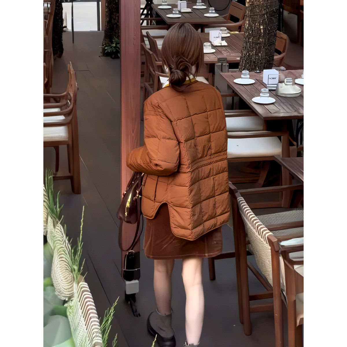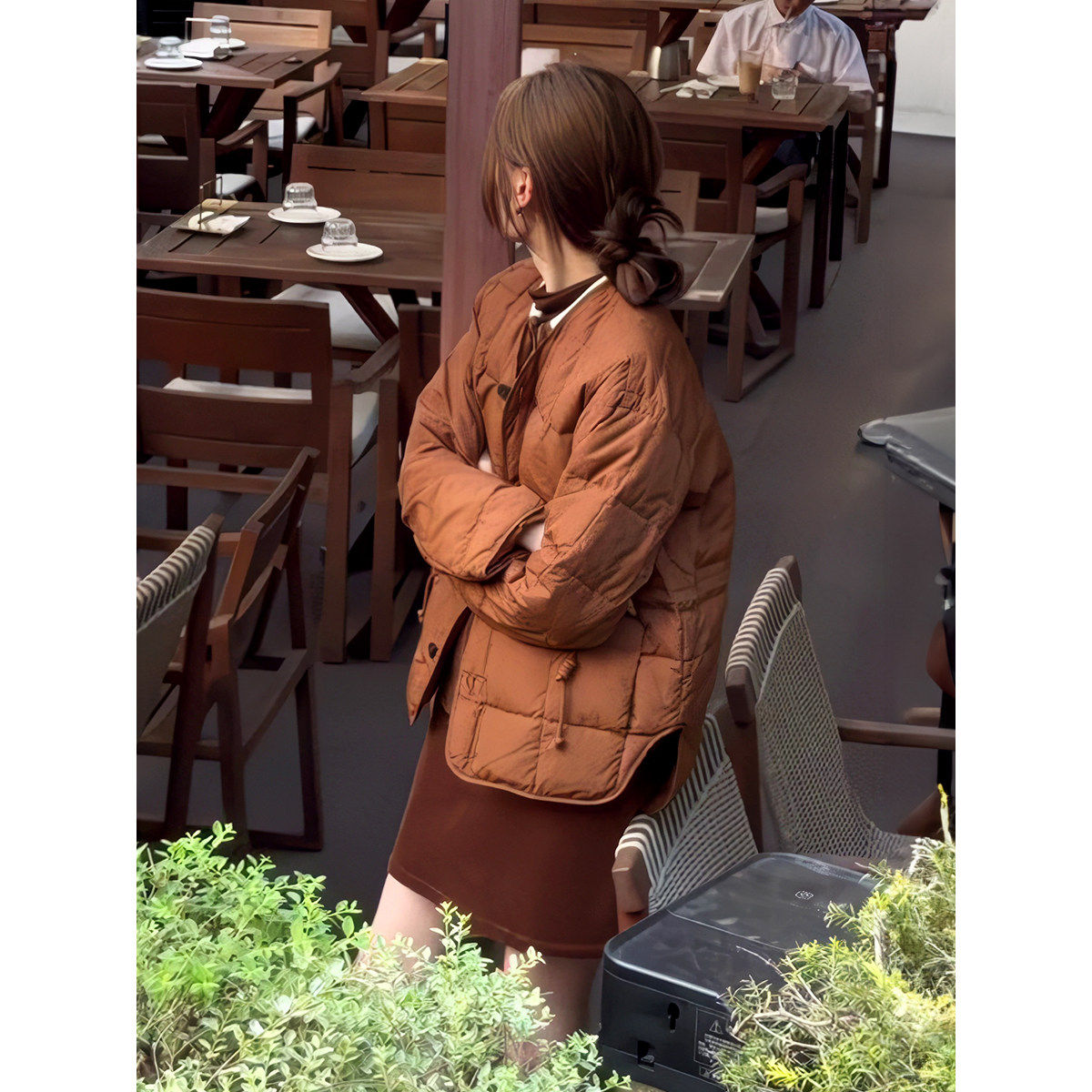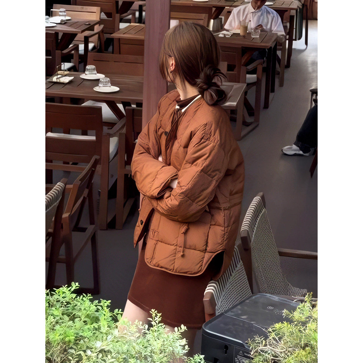 法式 日系小众宽松轻薄显瘦保暖外套 复古无领羽绒棉服女2025冬新款