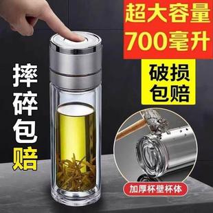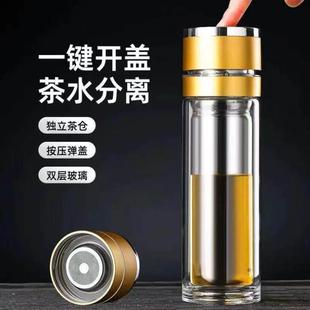 一键开盖玻璃杯保温杯防烫男士 高档泡茶杯速开茶水分离杯车载水杯
