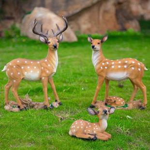 户外庭院花园林仿真动物装 饰摆件玻璃钢仿真梅花鹿雕塑小鹿摆件