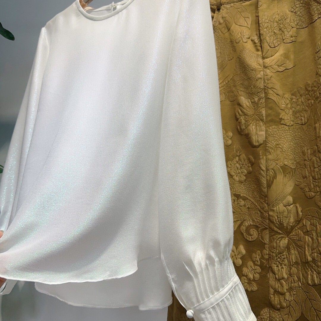 诺诺家26年早春桑蚕丝织金皮面料超美幻彩工艺小衫 1206 G417