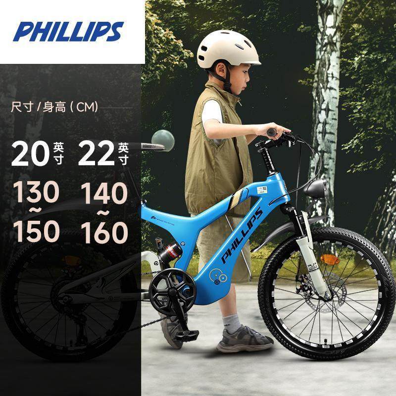 菲利普软尾双减震儿童自行车6 12岁男女孩学生青少年变速山地车