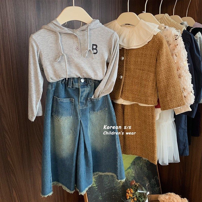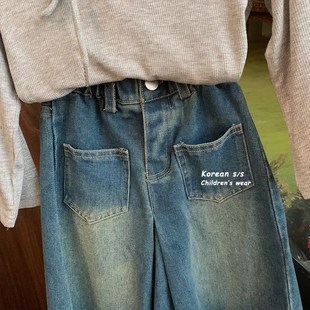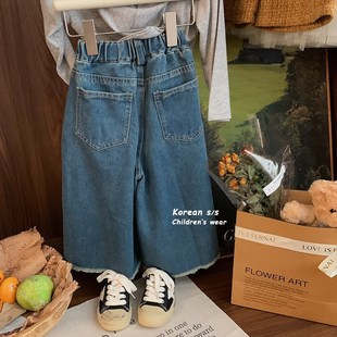 韩版 新品 复古大裤 腿牛仔休闲毛边直筒裤 潮 女童裤 裙裤 子2023秋季