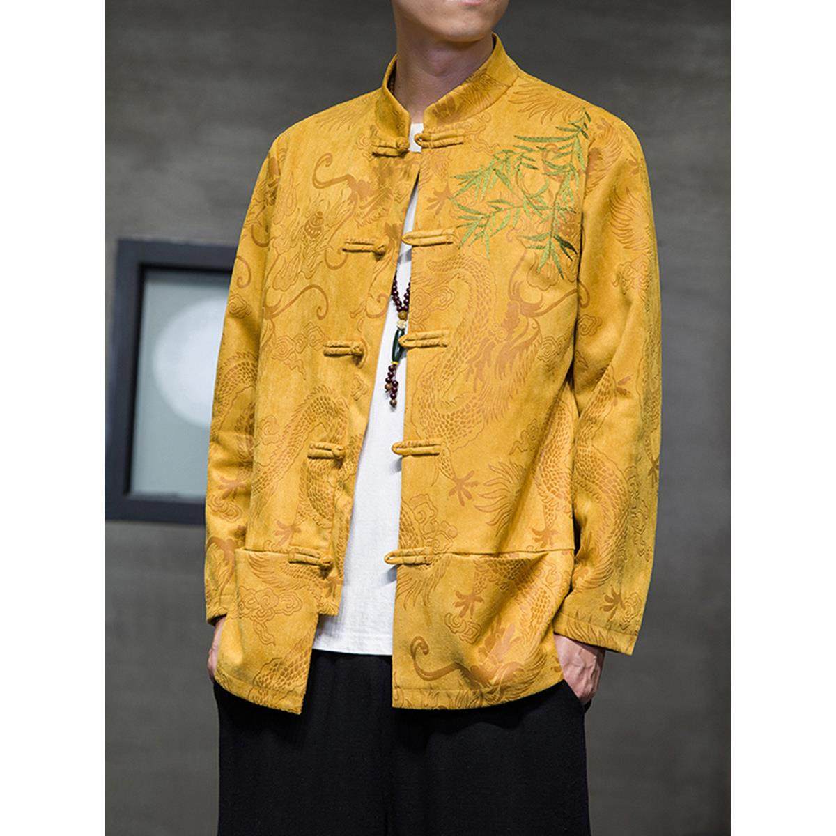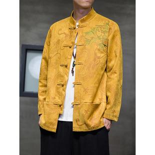 新夹克外套绒鹿皮唐装 刺绣中式 风男盘复古扣 中国男装 中老年中山装