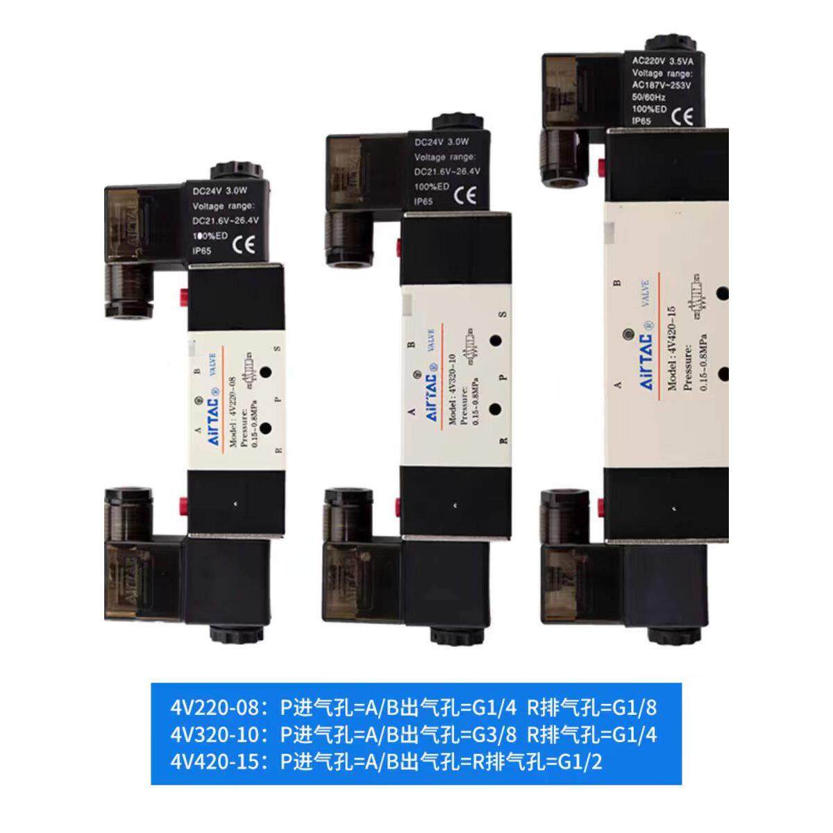 气动电磁阀4V210 08二位五通电子换向气阀24V气缸控制阀线圈220V