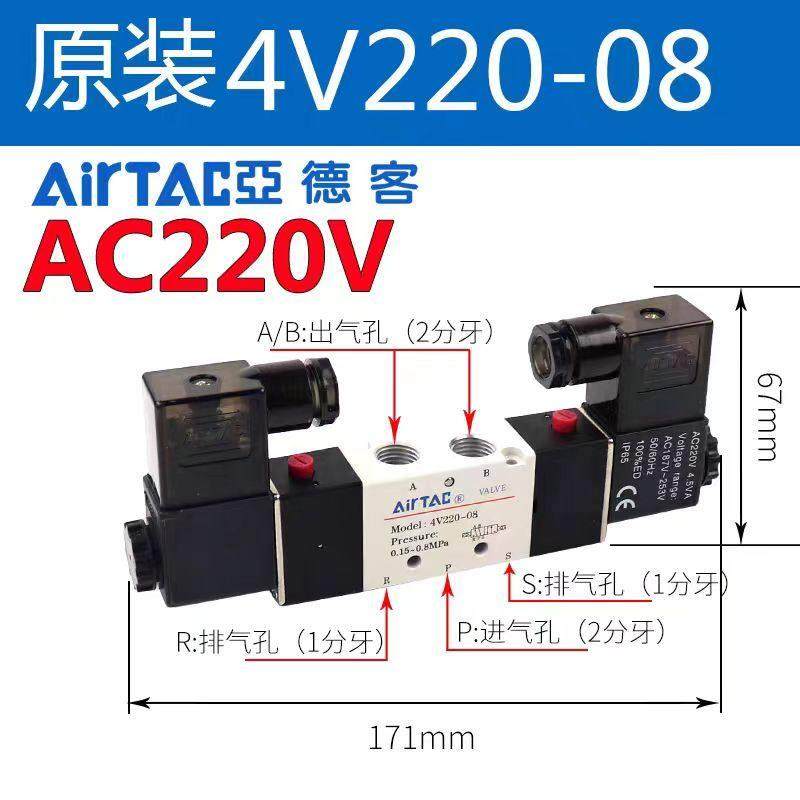 电磁阀4V210 08气动换向阀气缸气阀控制阀24v二位五通电子阀220V