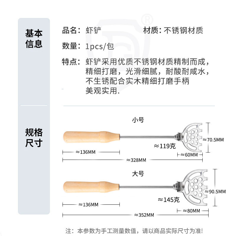 多功能拌饵铲饵料铲 实木柄一体拌饵 矶钓不锈钢虾铲 矶钓饵铲