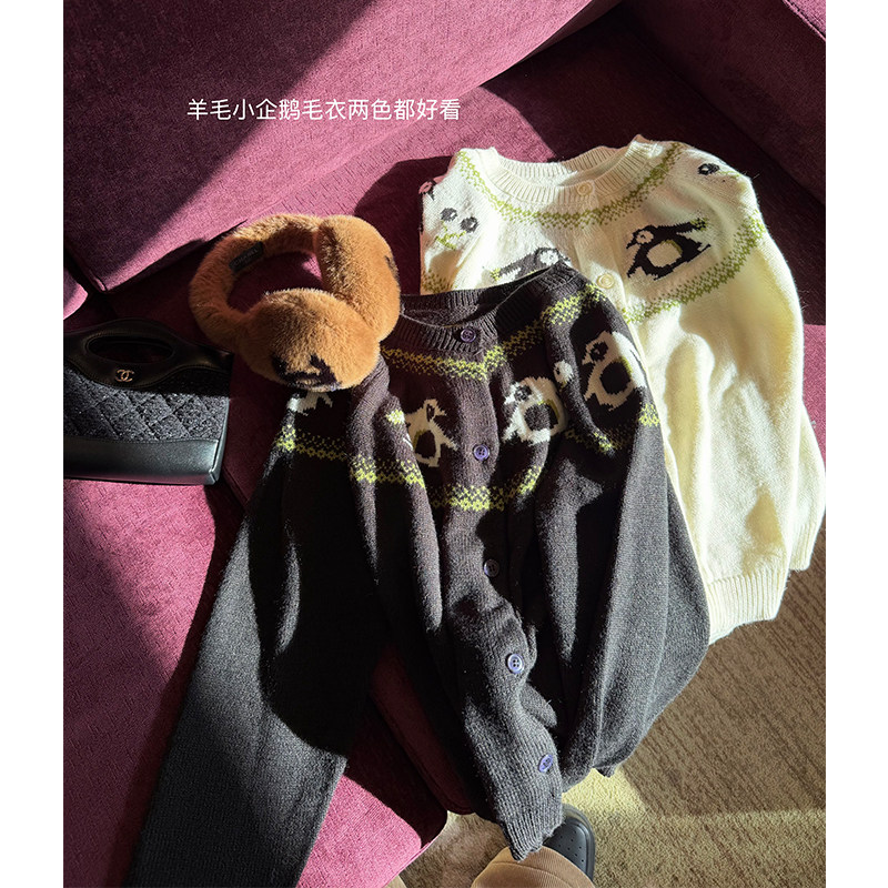 企鹅提花羊毛针织开衫 费岛日记 女冬毛衣 23PM20点 tingtings12