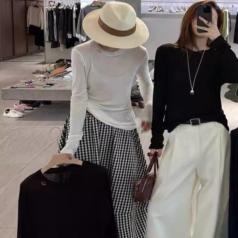 弹力上衣桑蚕丝长袖 特价 笑脸刺绣打底衫 薄款 T恤 处理不退换one正版
