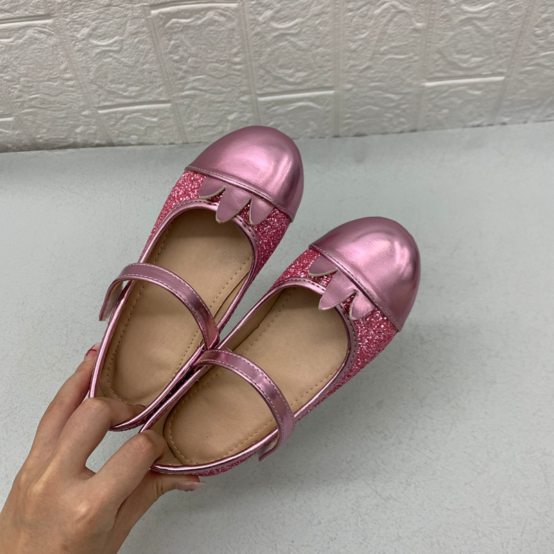 童鞋 水钻闪粉公主鞋 平底浅口单鞋 外贸单出口一字带魔术贴玛丽珍鞋