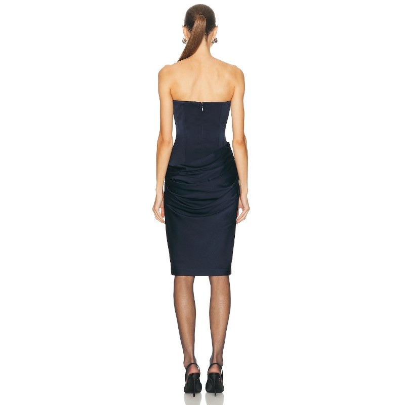 A字短裙 细闪露背修身 怪诞女孩 圣诞节甜美蝴蝶结V领挂脖连衣裙女