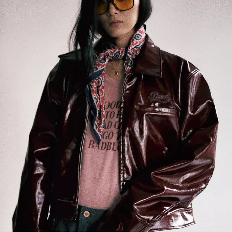 韩潮badblood日常薄款 百搭上衣甜妹溜肩宽领T恤 英文印花防晒长袖