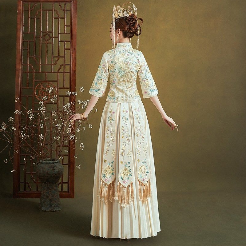 旗袍 显瘦秋冬款 淡极生艳 温柔珠光厚款 原创自制秋冬款