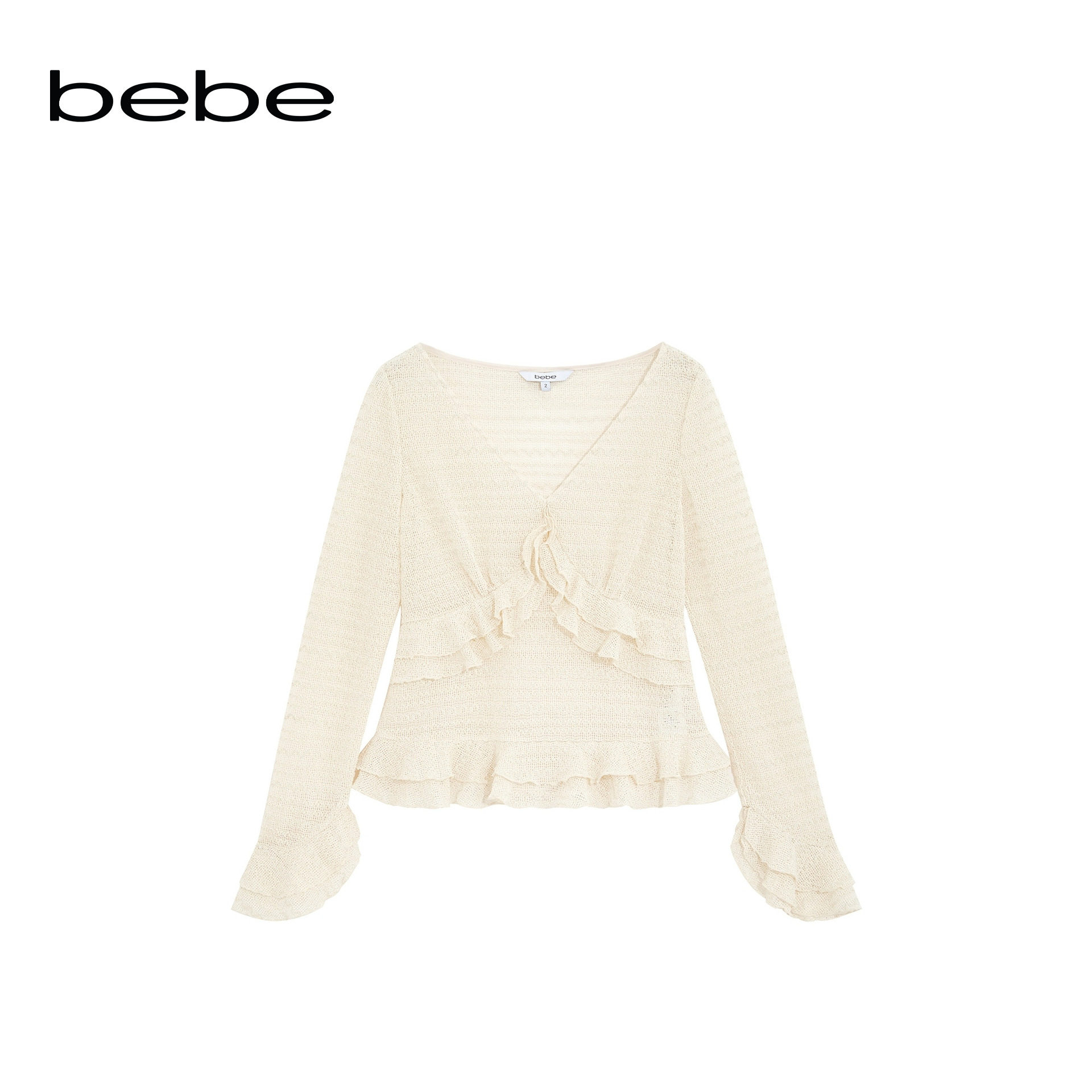 口荷叶边设计上衣180103 女士优雅千金风V领袖 bebe2026春季 新款