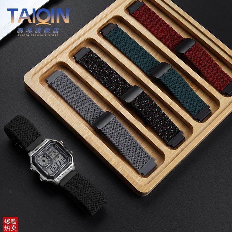 泰琴适用卡西欧小方块AE1200 1300W218A168弹性尼龙手Y表带18mm