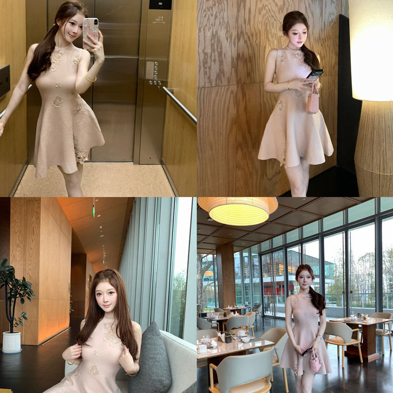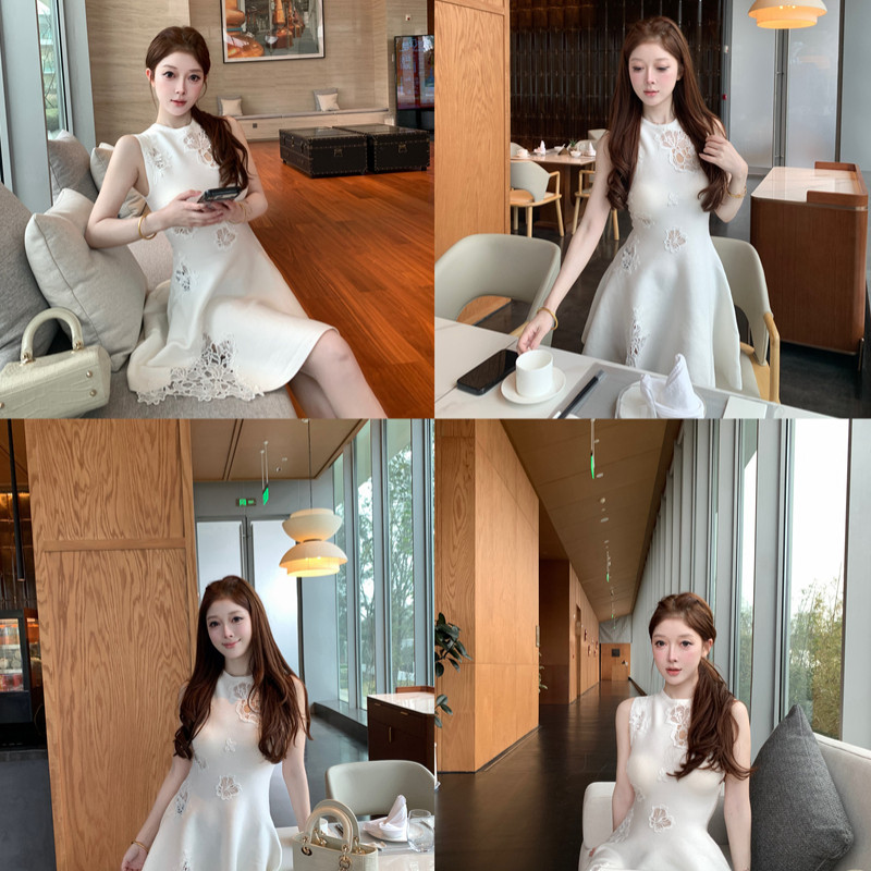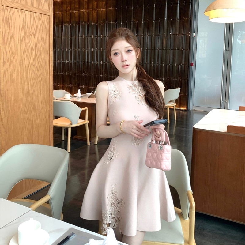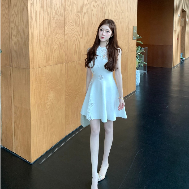 M900蕾丝镂空无袖 背心连衣裙女秋冬收腰显瘦气质纯欲气质打底短裙