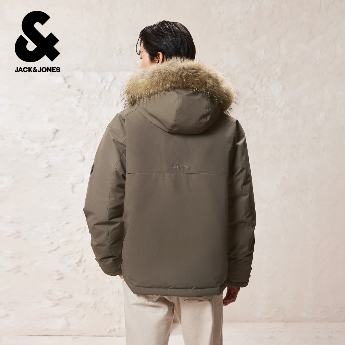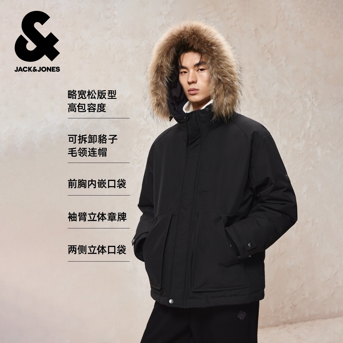 毛领羽绒派克服男冬连帽外套男装 杰克琼斯短款 防泼水机能冰壳