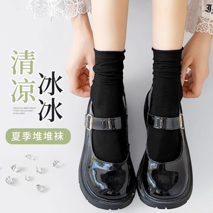 韩版 防臭吸汗休闲竖条纹堆堆月子袜纯糖果色 女士中筒长袜子春秋款