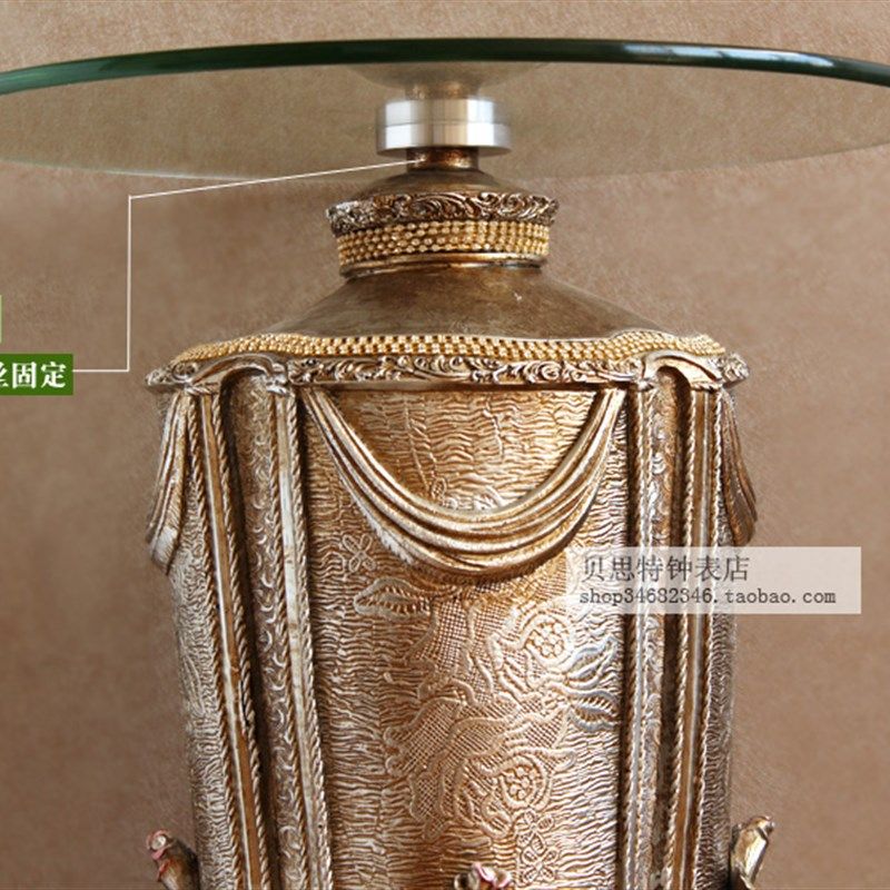沙发边几欧式 创意艺术小桌摆件 复古客厅角几圆形玻璃桌面茶几时尚