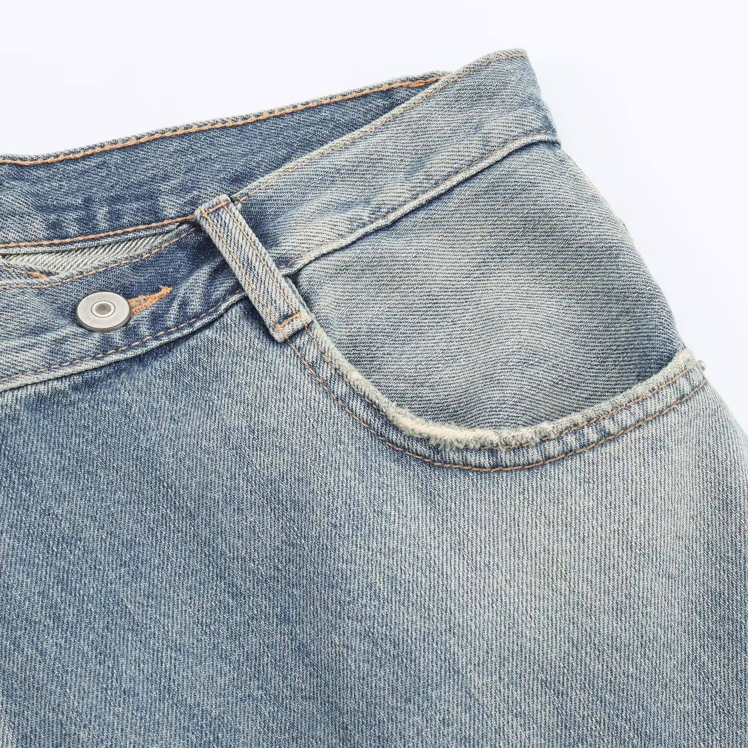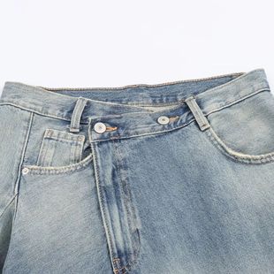 Skirt Double Front Women Asymmetrical Midi Buttons Hem Denim