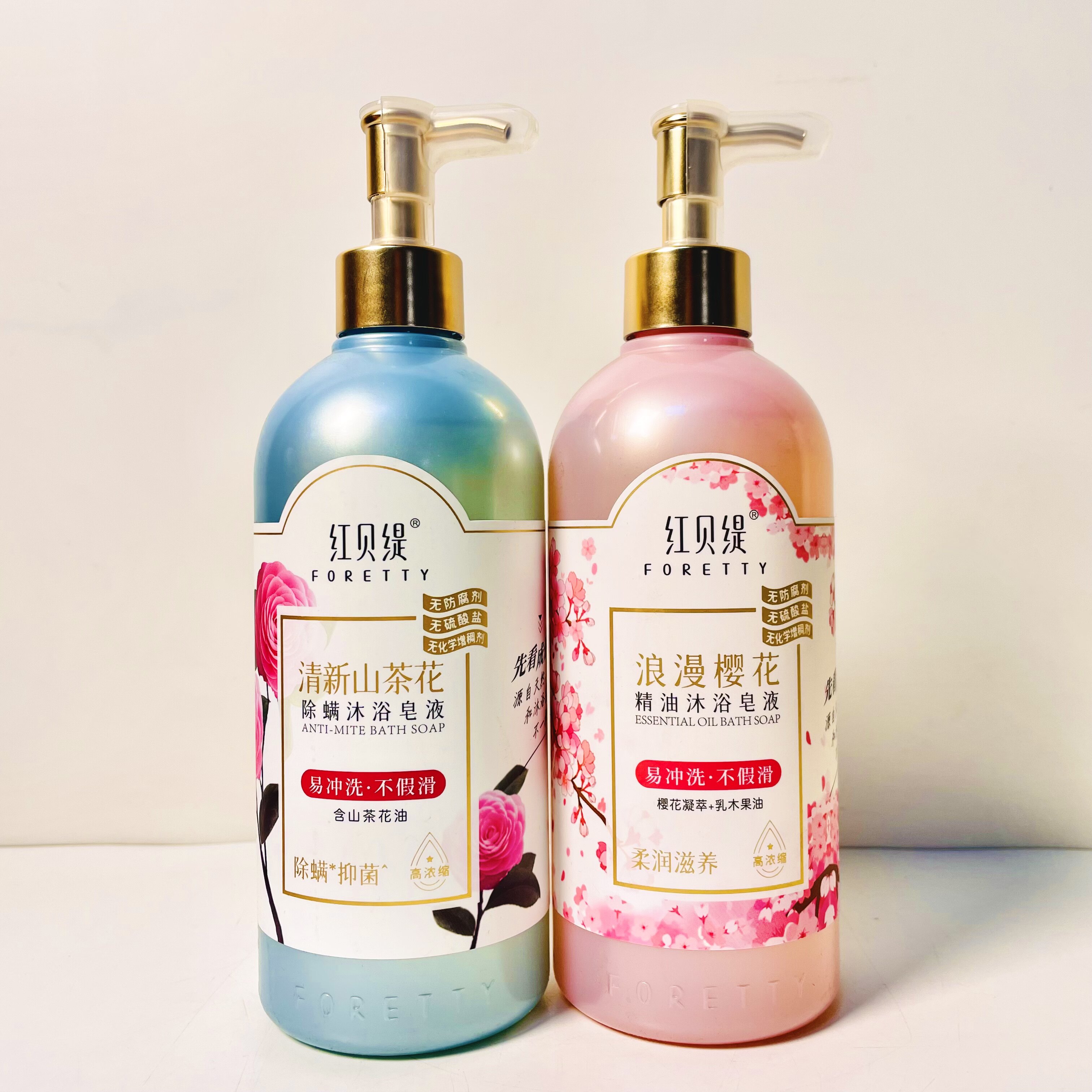 红贝缇精油沐浴皂液500ml车厘子山茶花樱花易冲洗不假滑按压洗澡