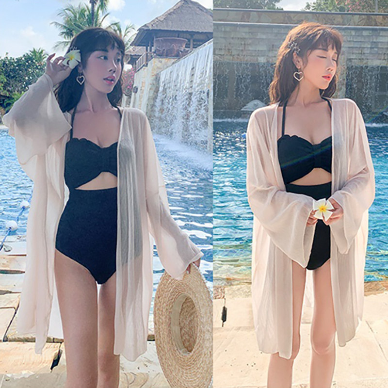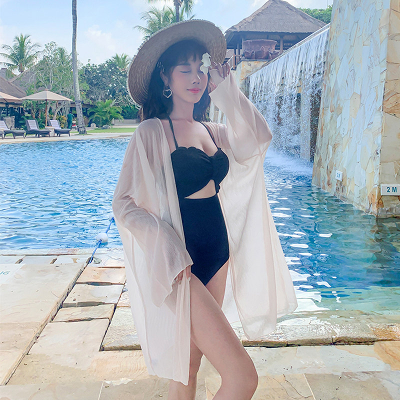 米色沙滩度假比基尼泳衣外搭显瘦遮阳罩衫 宽松开衫 长袖 大渔泳衣