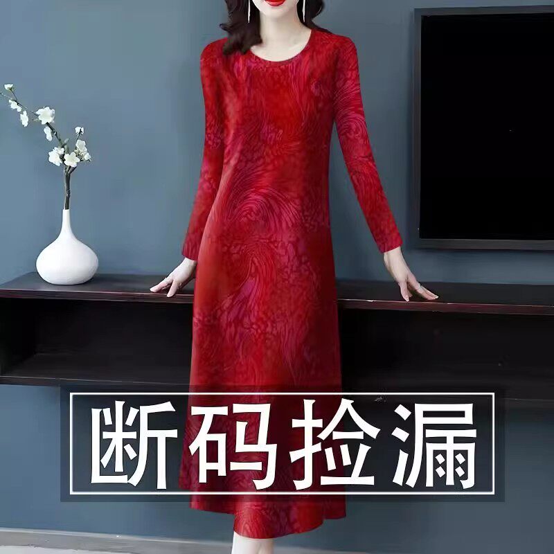 春秋新款 中长款 长袖 减龄遮肚妈妈装 连衣裙女 打底裙修身 清仓捡漏