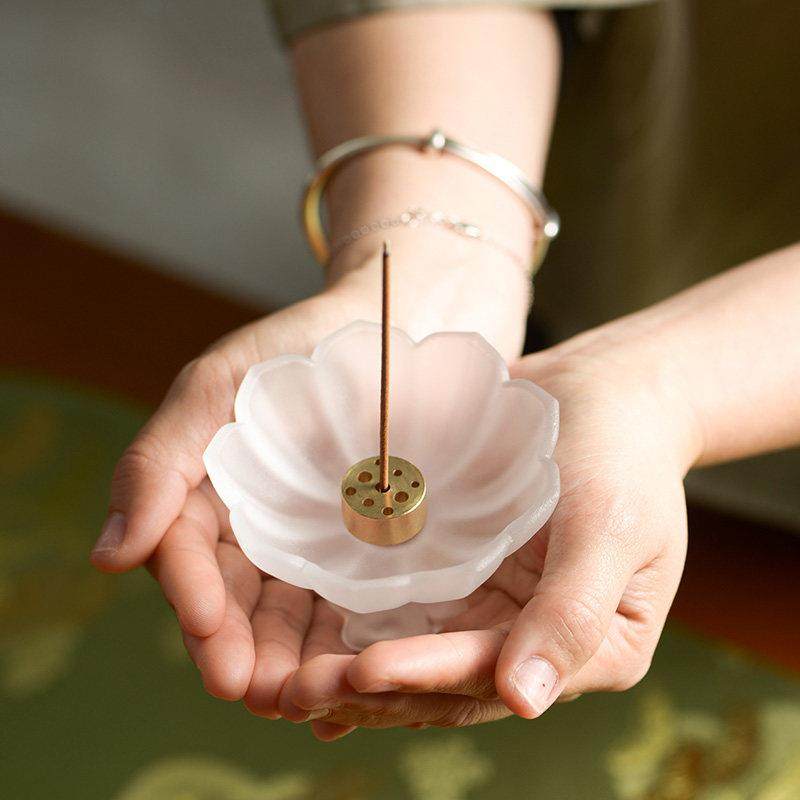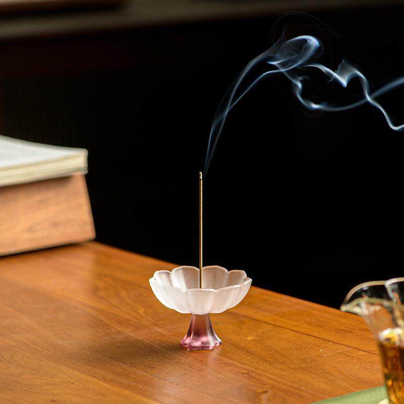 线香底座家用室内香薰 沉檀香插香座线 中式 国风禅意琉璃莲花香炉