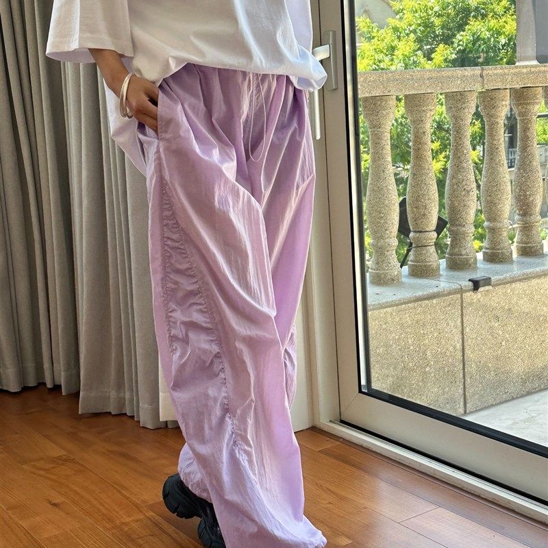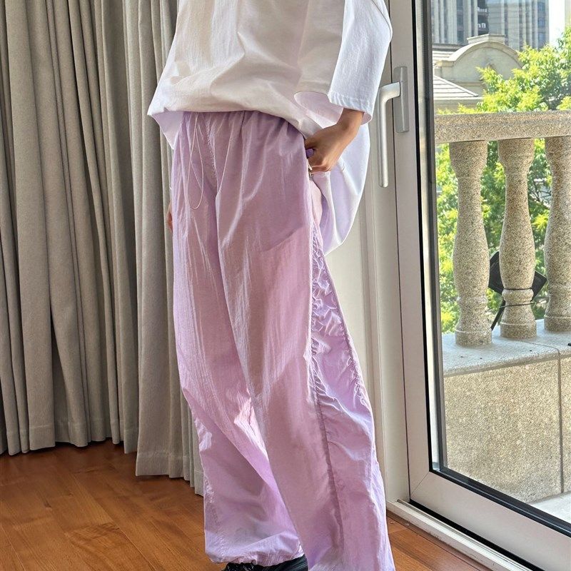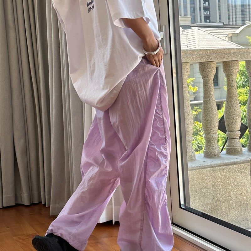 落季 长裤 新款 干爽宽裤 薄款 速发紫色松子褶皱降夏伞休闲裤