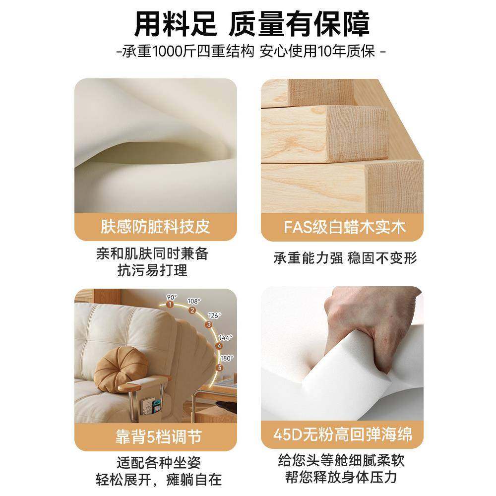 折叠沙发床两用2025新款 客厅阳台小户型多功能实木沙发单人伸缩床