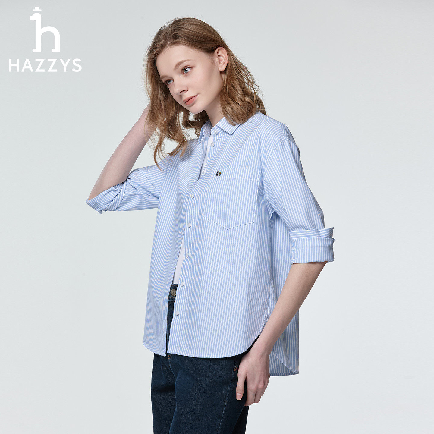 条纹牛津纺衬衣时尚 女春季 休闲宽松上衣外套 衬衫 Hazzys哈吉斯长袖