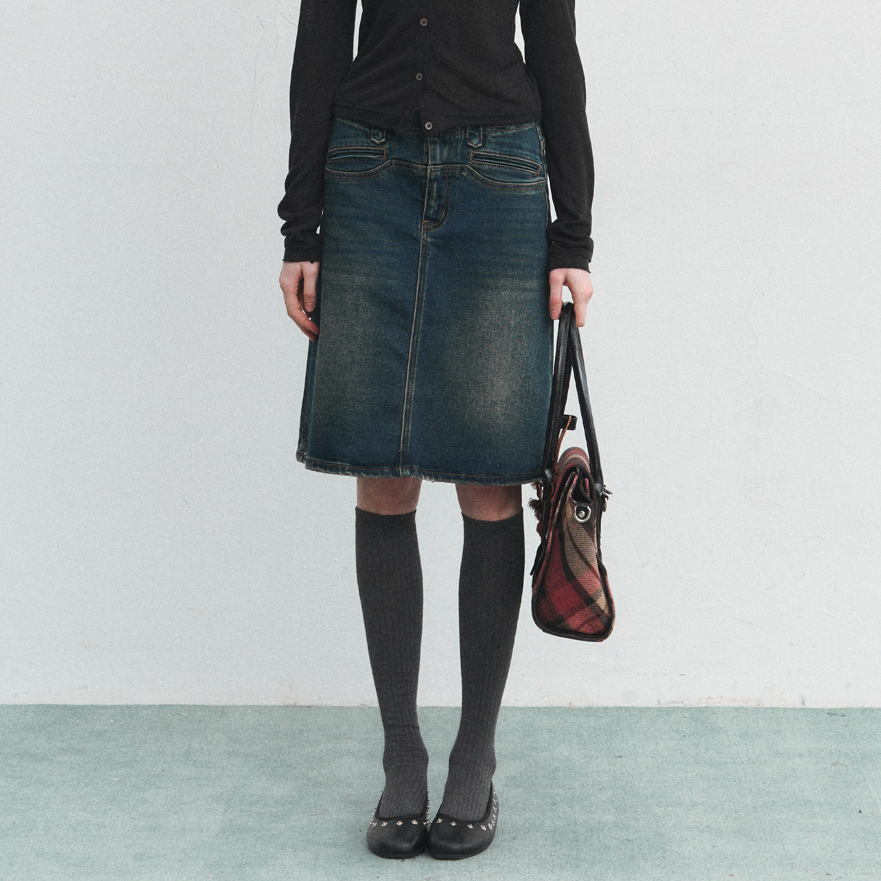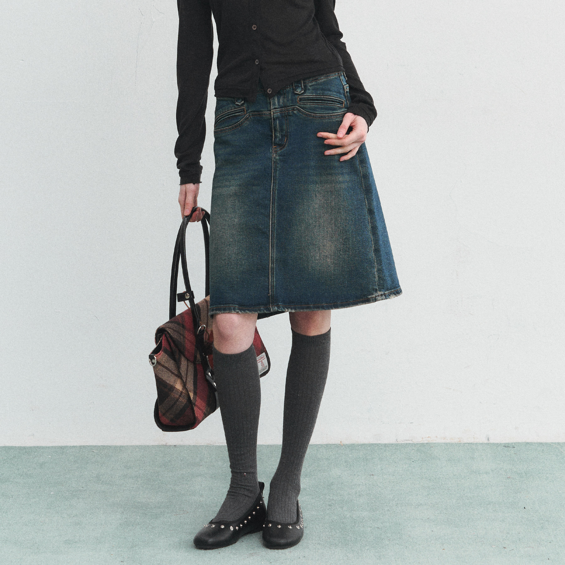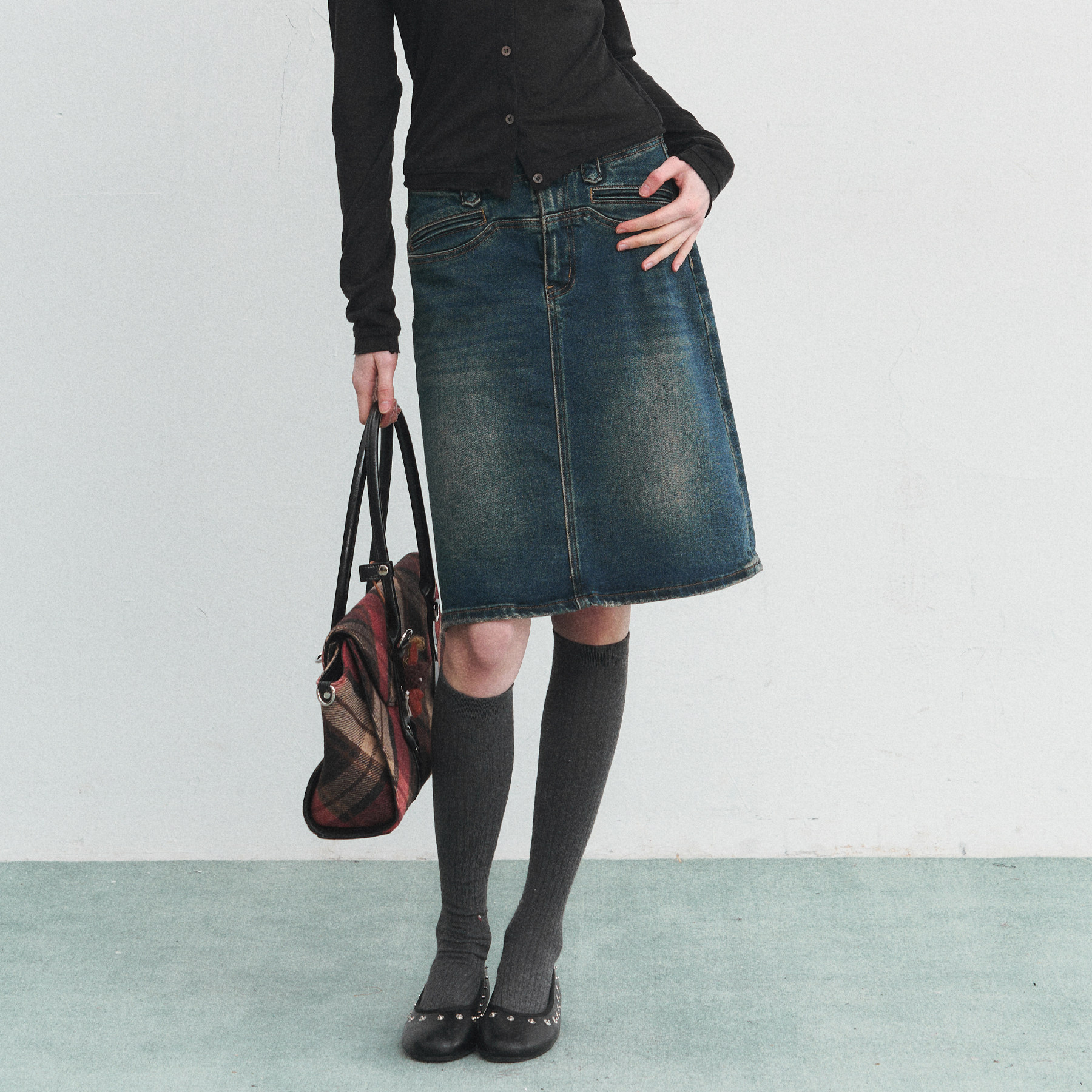 重工丹宁一字袋洗水直筒裤 蓝调时分 牛仔裙半身裙 YOUTH SPEAR