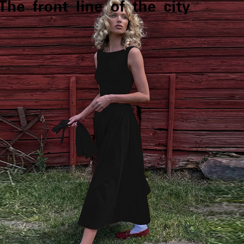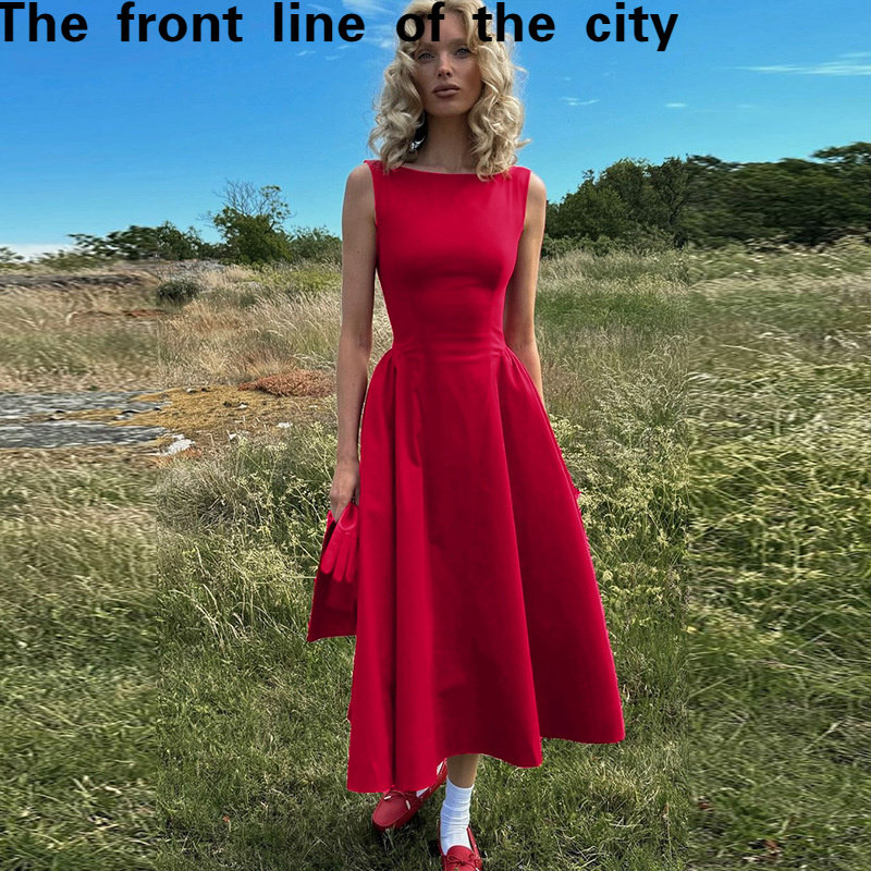dress夏季 fit 气质纯色无袖 时尚 新款 hugging hip sexy slim Lace