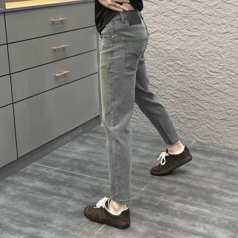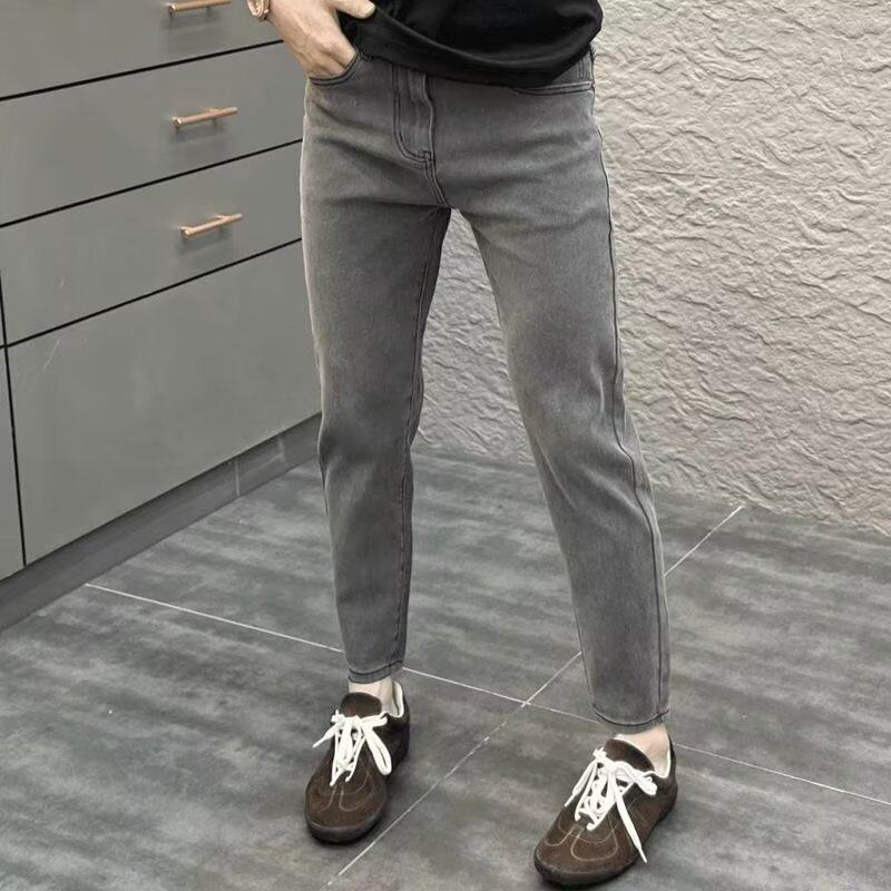 潮流弹力显腿长裤 高端品质烟灰色牛仔裤 韩版 小脚2025新款 子 男修身
