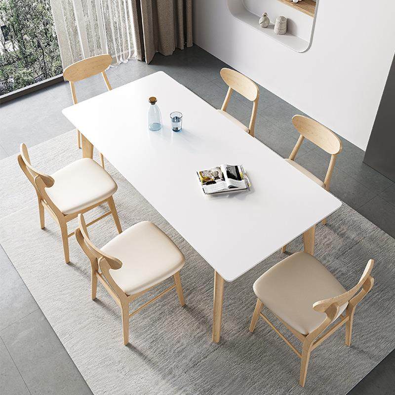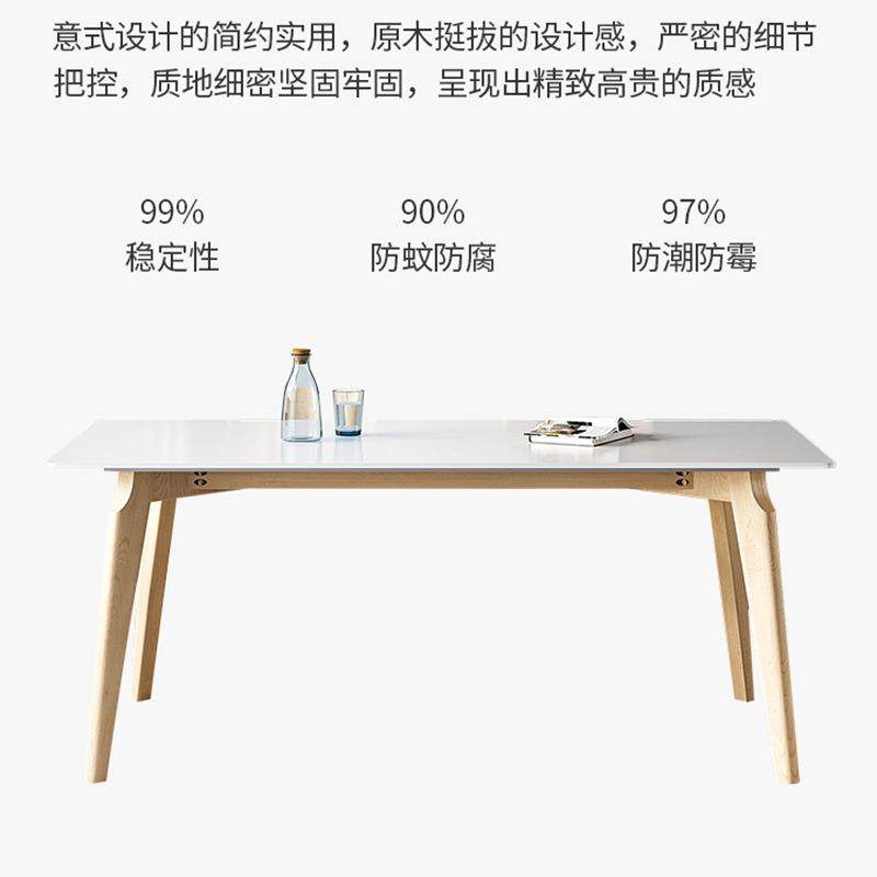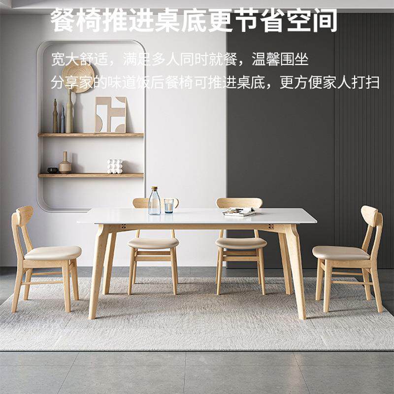 北欧实木岩板餐桌椅组合长方形家用小户型原木风加厚纯白岩板饭桌
