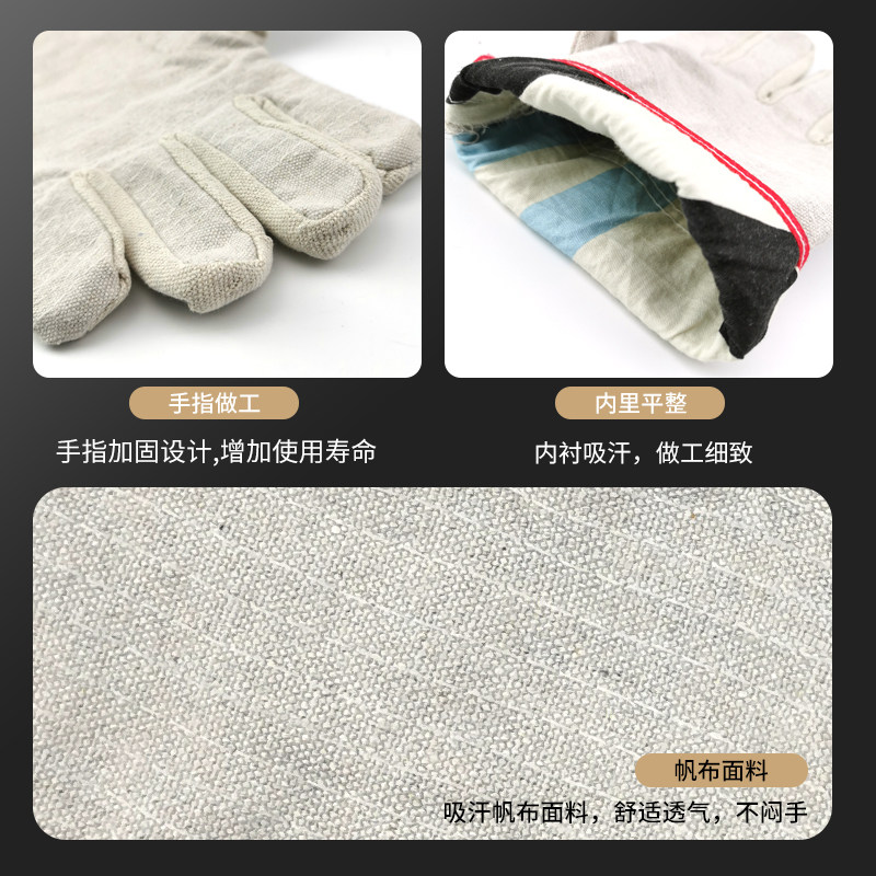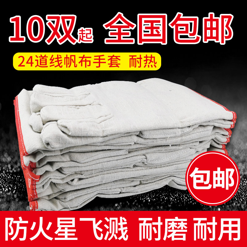 24道线帆布手套双层加厚耐w磨劳保手套机械切割电焊手套10双装