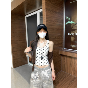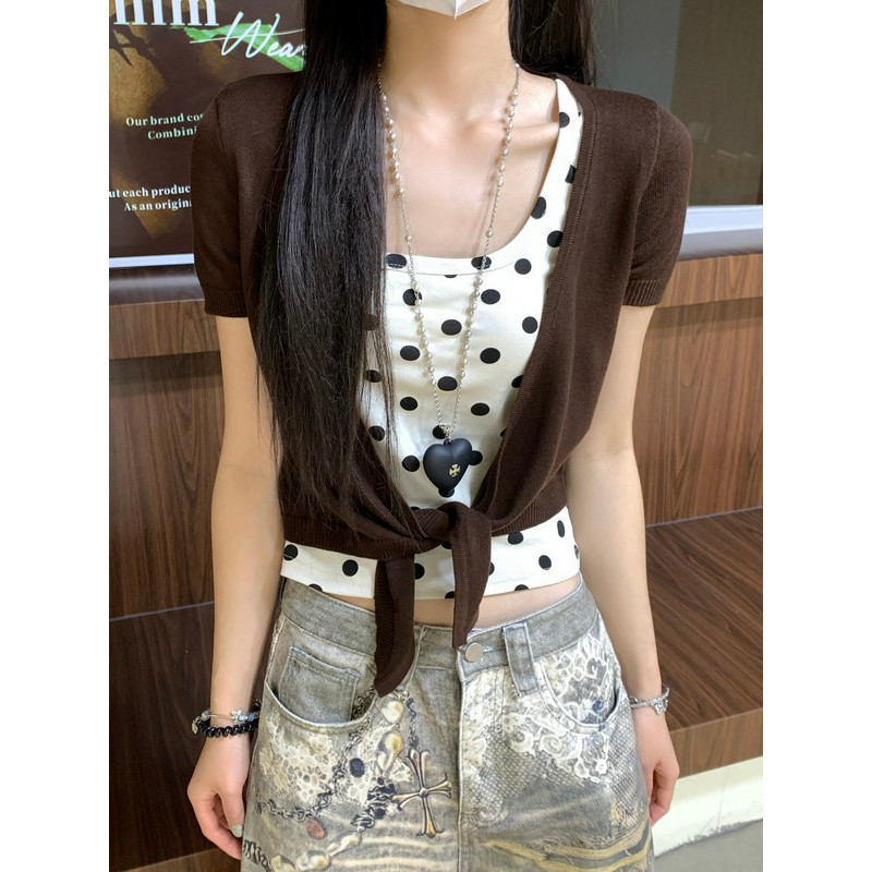 针织开衫 实拍实价夏季 背心内搭+咖色绝美薄款 设计感波点短款 新款