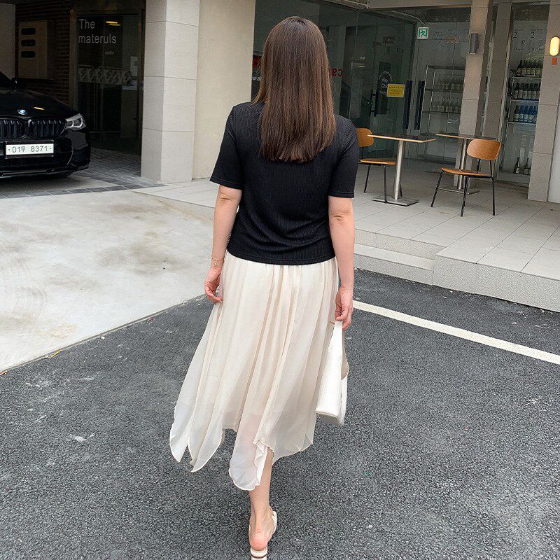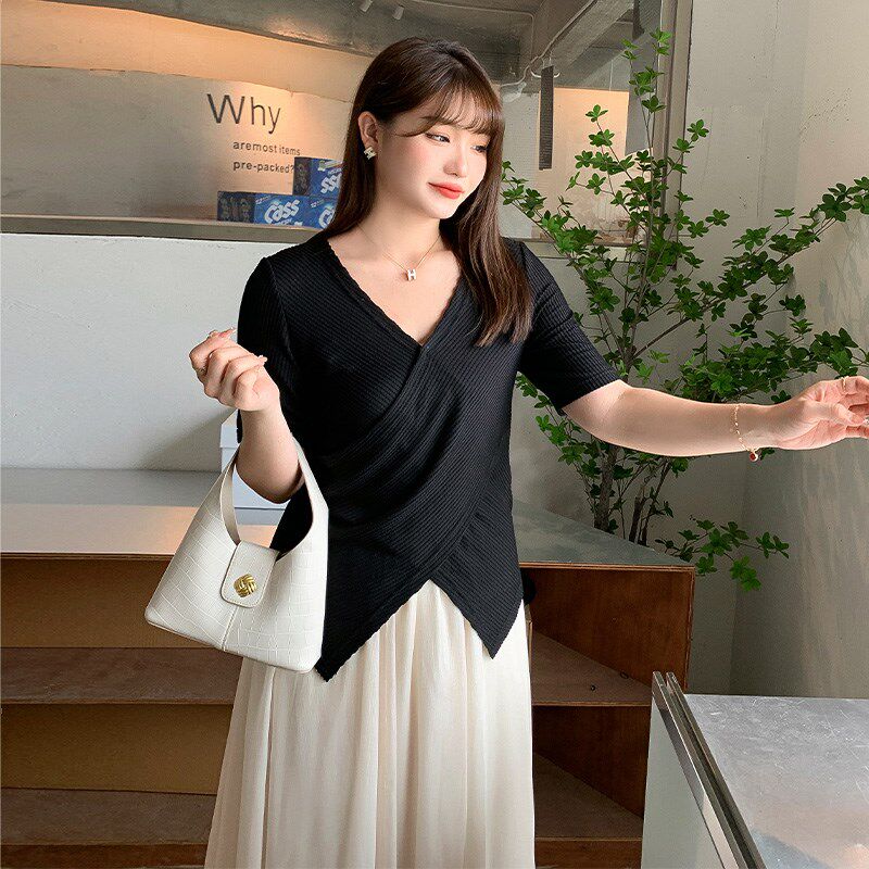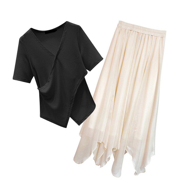 胖mm套装 微胖法式 夏装 女装 裙遮肉不规则雪纺遮胯半身裙子 上衣大码