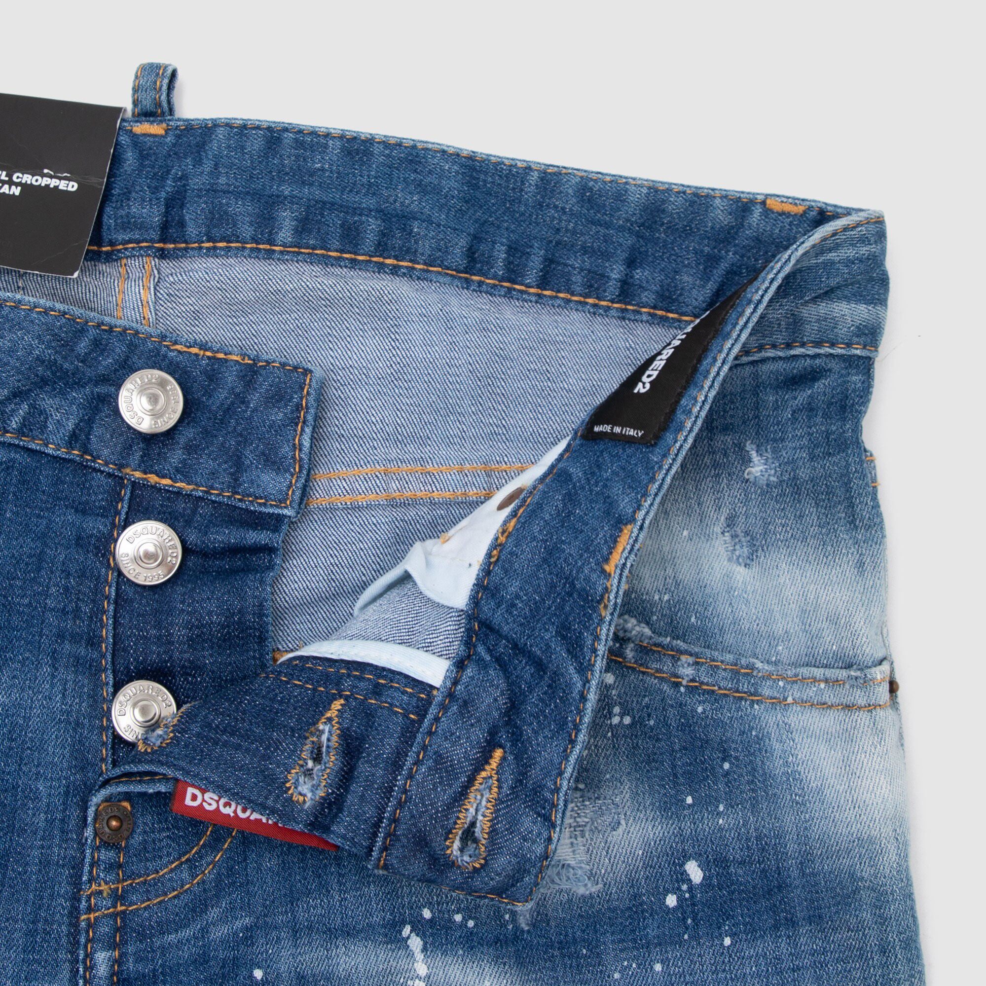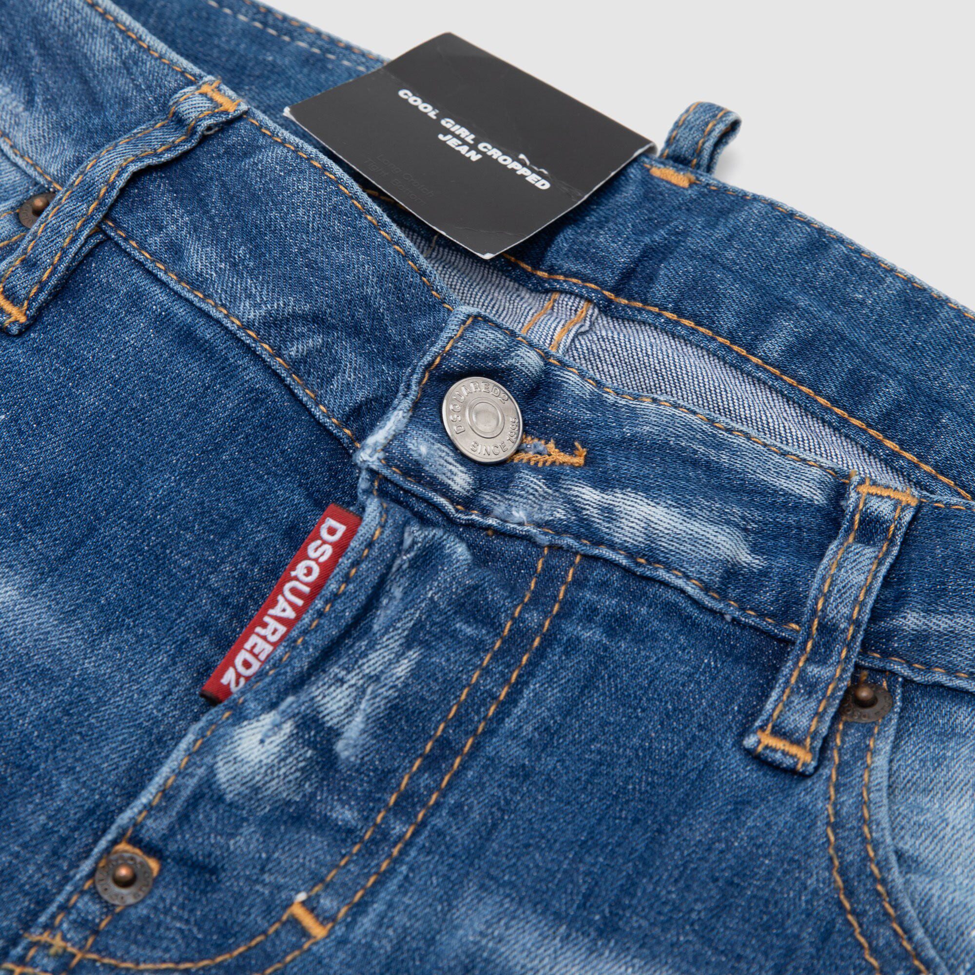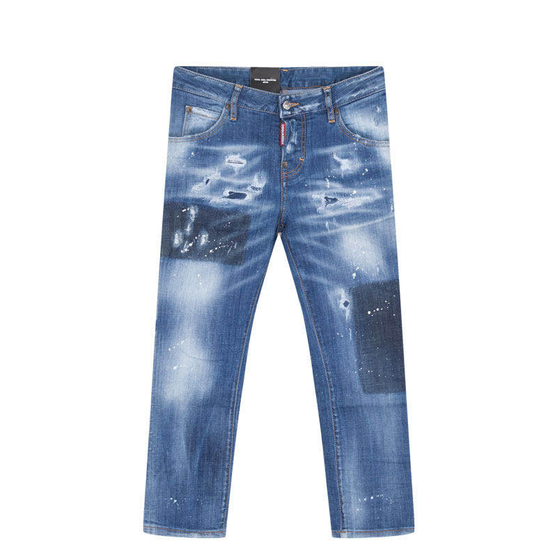 休闲牛仔裤 现货DSQUARED2 水洗补丁拉链女8分裤 新品 D2二次方夏季